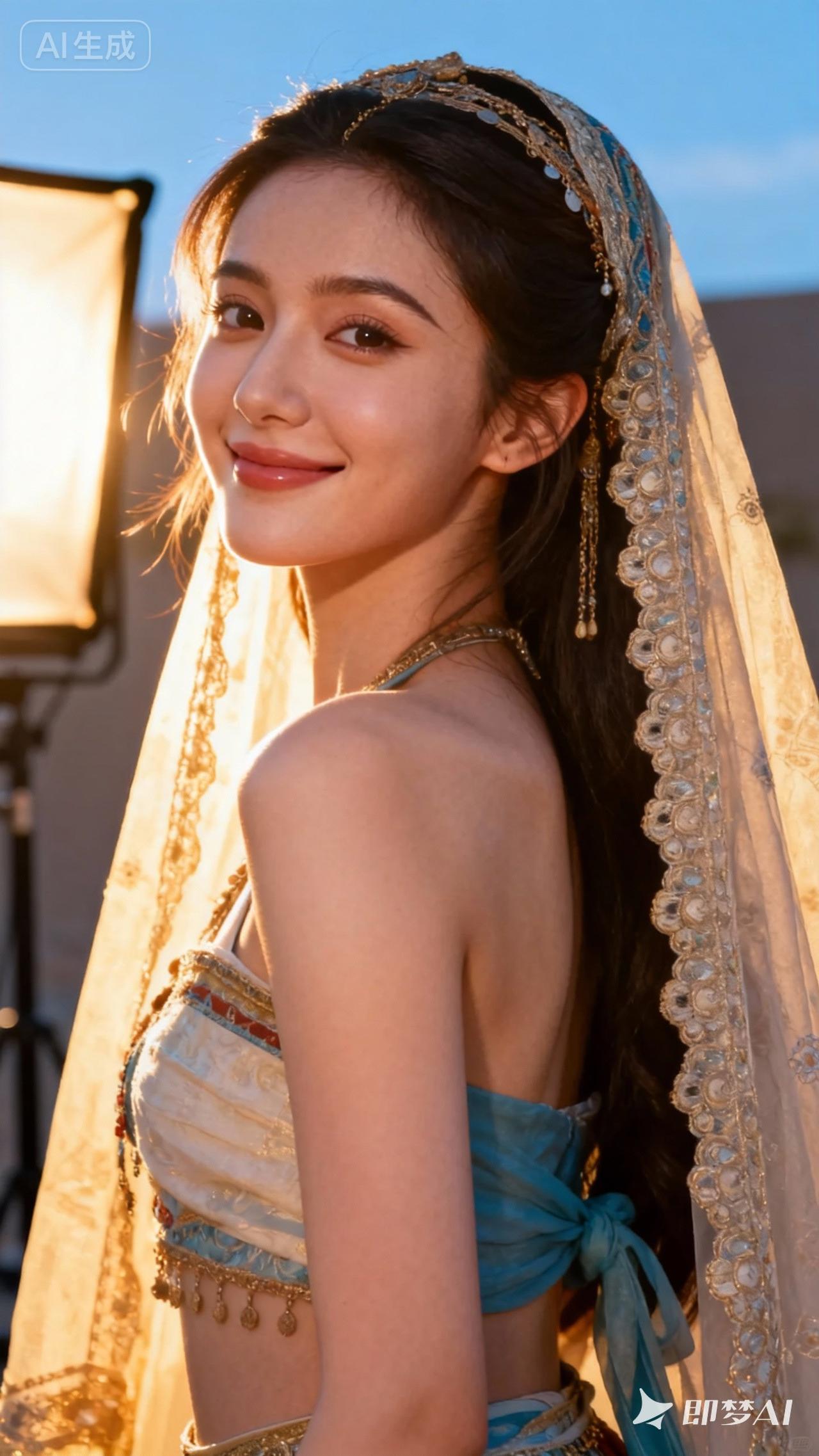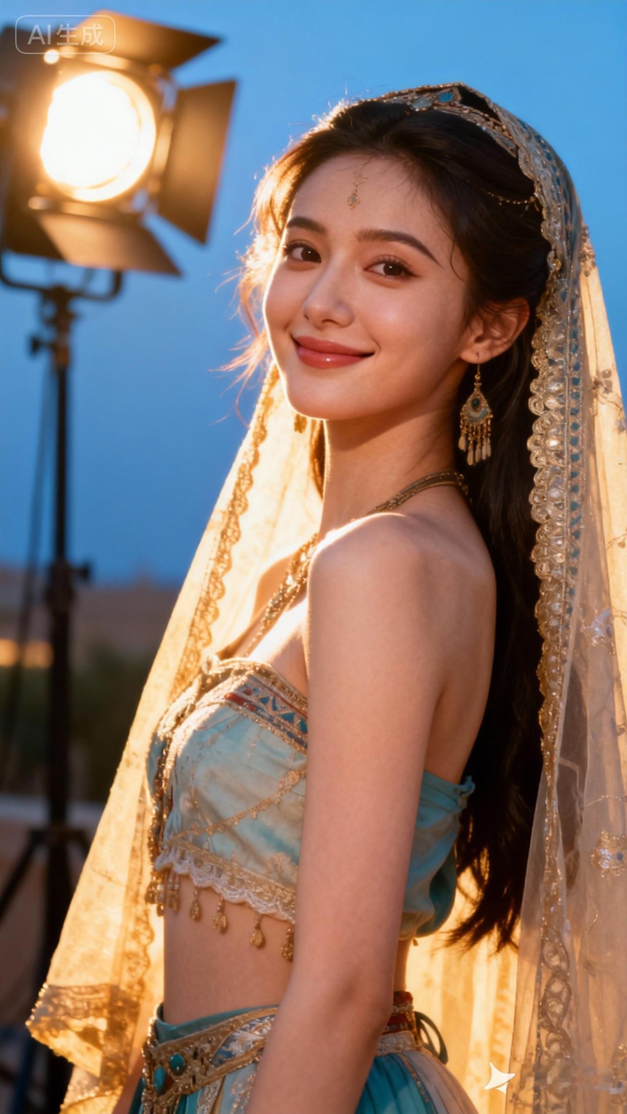 想象一下,一位异域风情少女,身着金纱在梦幻沙漠中轻舞,那画面简直美炸了。就像鞠婧