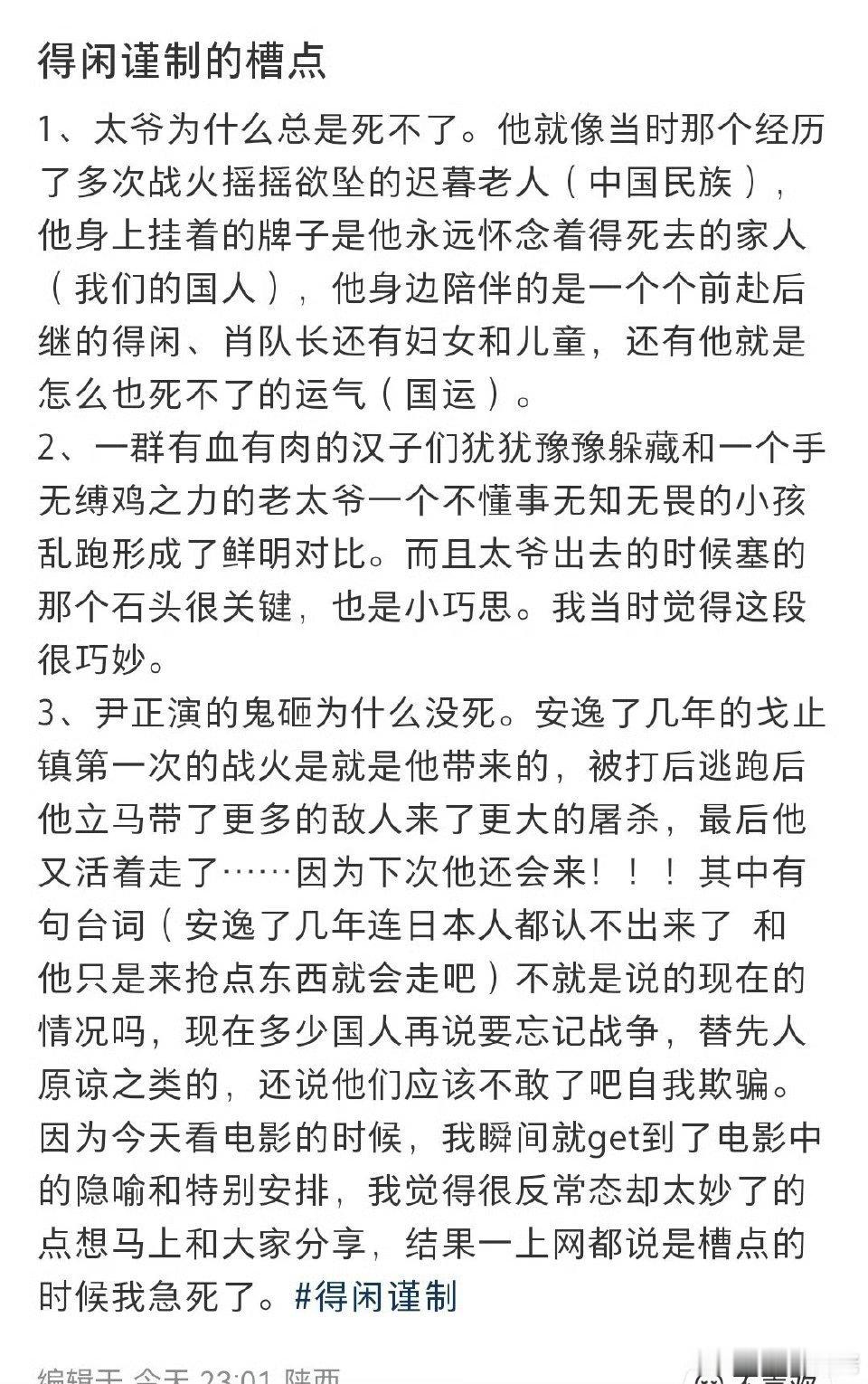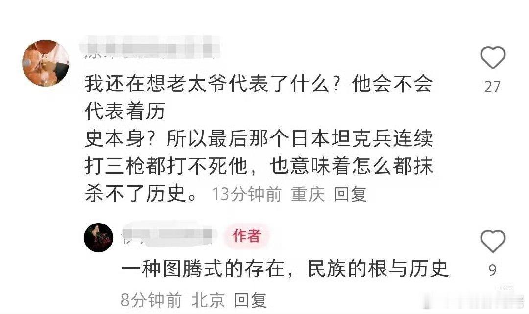 得闲谨制编剧兰晓龙解释了太爷为什么不死,太爷代表的就是我们的太祖文化!其实这个已经有影迷解读出来了的,那个解读的影迷好牛逼啊!!!看图!!!
