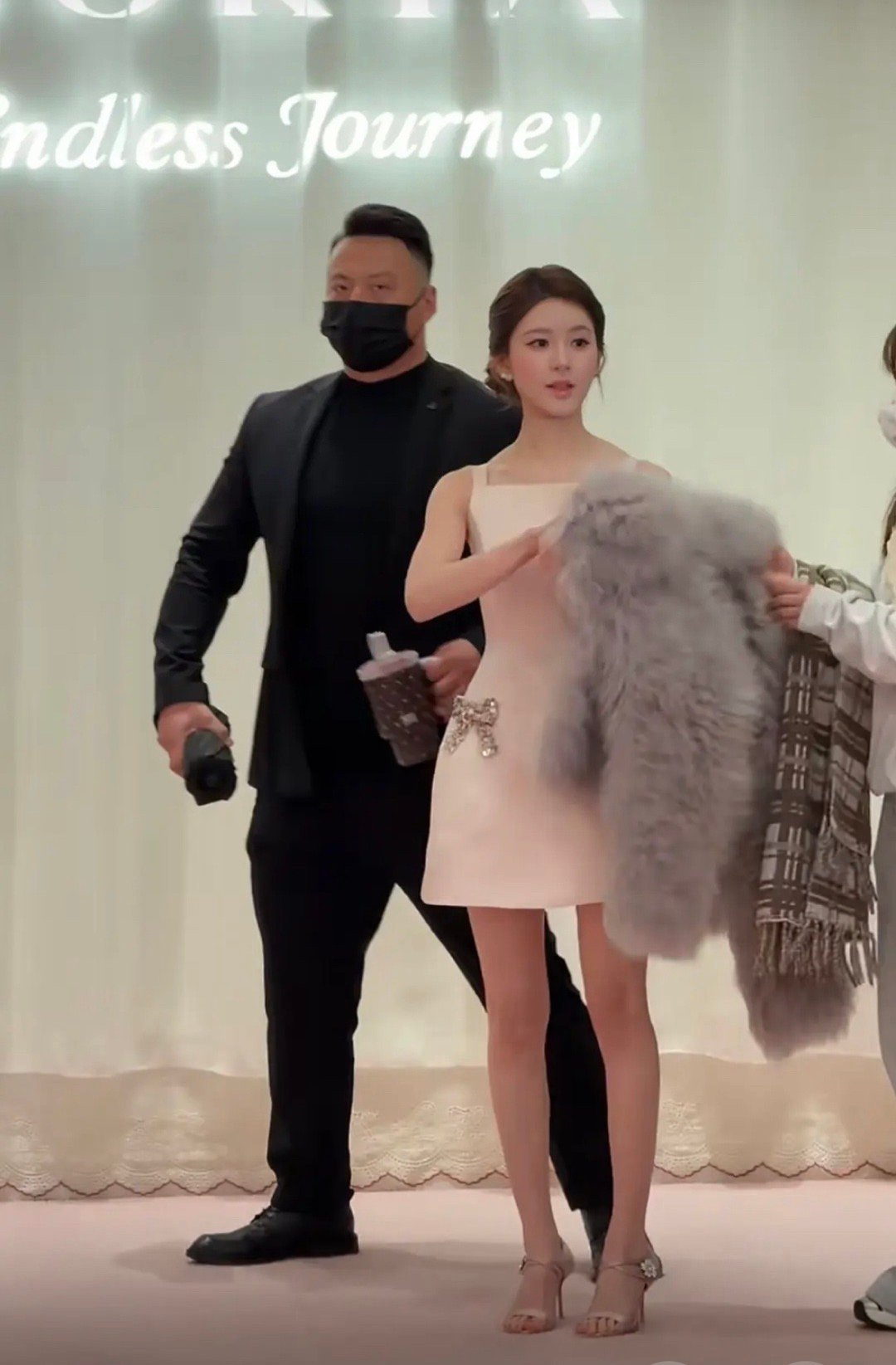 吴艳妮在成都穿着短裤大腿看起来很粗壮,表情自信又张扬