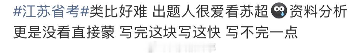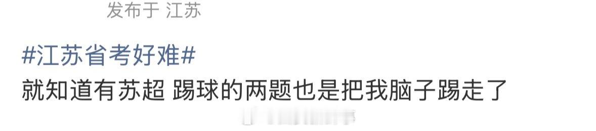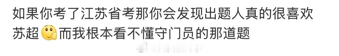 【江苏省考苏超 】江苏省考哪哪儿都是苏超 12月7日,省考八地联考。不少考生感慨江苏卷“怎么哪儿哪儿都有苏超”、“出题人看起来很爱看苏超了”、“感觉这个江苏已经沉浸于苏超无法自拔了”,你看过苏超吗?