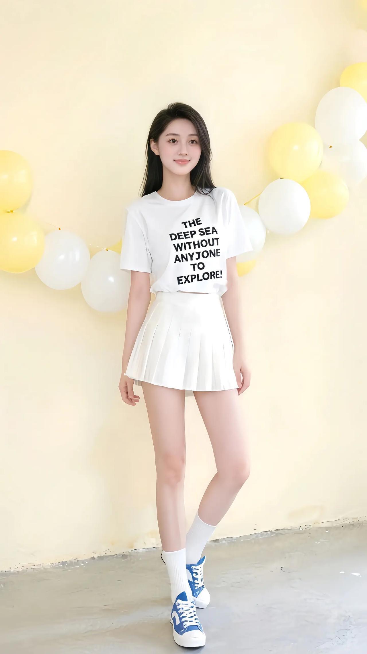 少女心满满的海边穿搭,白色短裙搭配蓝色帆布鞋,清新又可爱!🌊👗👟