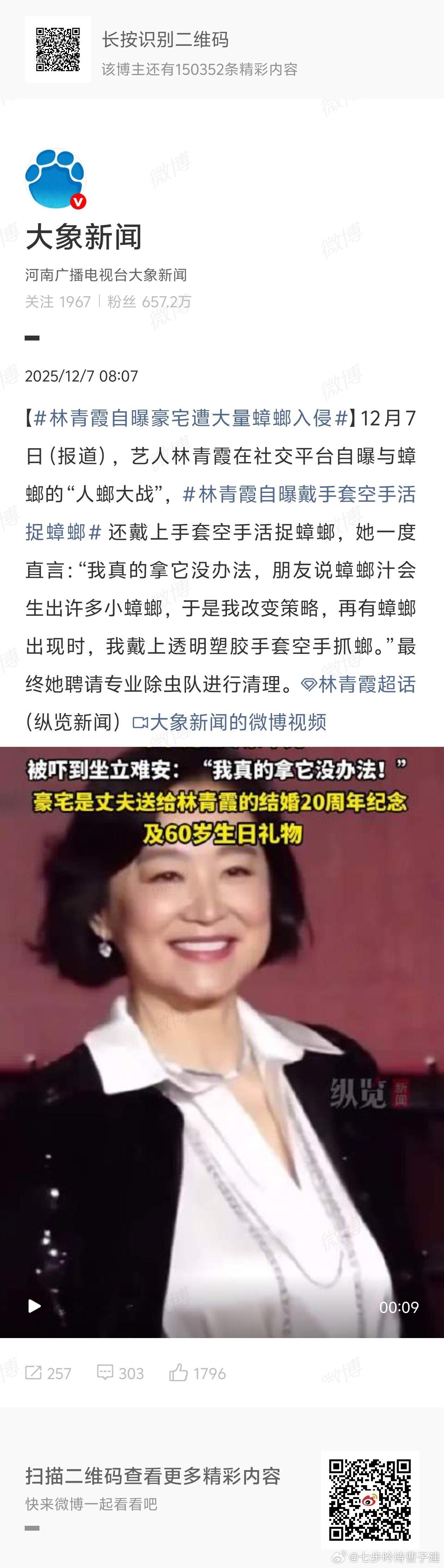 林青霞自曝豪宅遭大量蟑螂入侵我香港家里也是带院子的,我一般都是室内全放上拜耳,院子里定期花钱叫专业人士处理,灭虫灭鼠