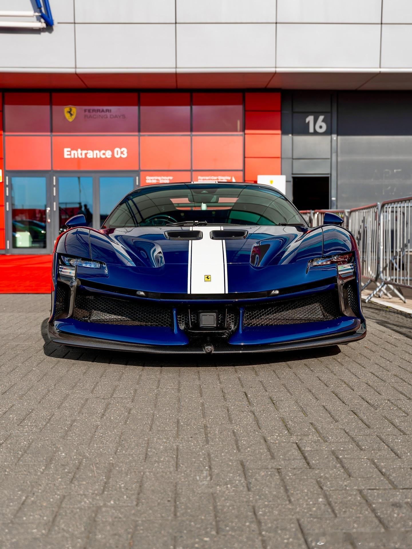 外观配色为Blu Pozzi,搭配Bianco Bianco的Tailor-made特别赛车拉花--Tailor-made在这里是名字的一部分,不代表这台SF90 XX是Tailor-made版本。外观方面选择了漆盾,内饰为Nero Alcantara,搭配Blu Medio Alcantara细节点缀,头枕处的马标使用了白色描线。交付于位于英国斯温登的Dick Lovett Ferrari。图片来自.p