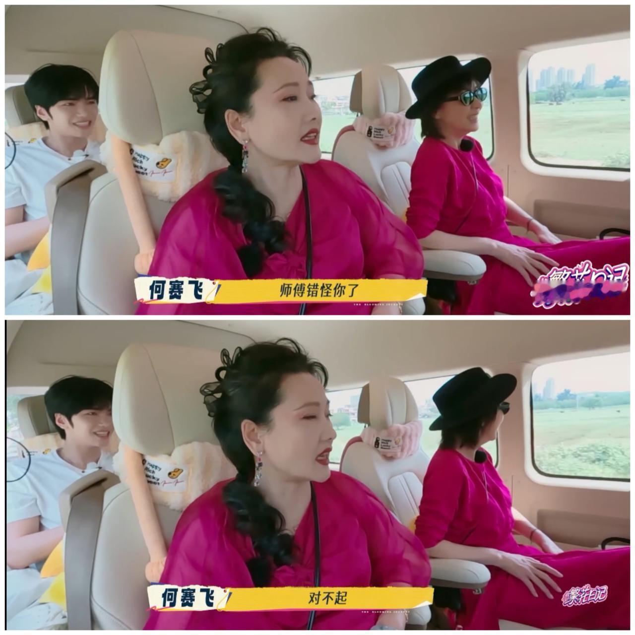 何赛飞误会司机, 搞清楚情况后, 当众对司机道歉。 何赛飞和姐姐们坐车前往簪花地点, 何赛飞发现车上手把坏了, 手把无法放下来固定。 大声告诉司机 车上手把坏了。 司机告诉她操作方法, 她依然无法调整好手把。 于是旁边的邵子恒 伸出援手, 一下子搞定了。 邵子恒的操作, 证明手把没有问题, 司机的车辆座椅配件没有问题, 司机对于车辆保养与维护 一点问题都没有, 是何赛飞不会操作与调整手把。 于是何赛飞毫不犹豫的 对着镜头, 跟司机道歉。 一点都不矫情。 算是为司机澄清 不是司机的责任。 哎呀, 何赛飞真的一点明星架子都没有, 有错就马上认。 她不会因为对方身份普通, 而缺少基本的礼仪与尊重。 从这个细节可以看出来, 何赛飞对待身边的人真的很好, 无论对方身份是高是低, 她都会以礼相待。 跟她在一起的人太幸福了。