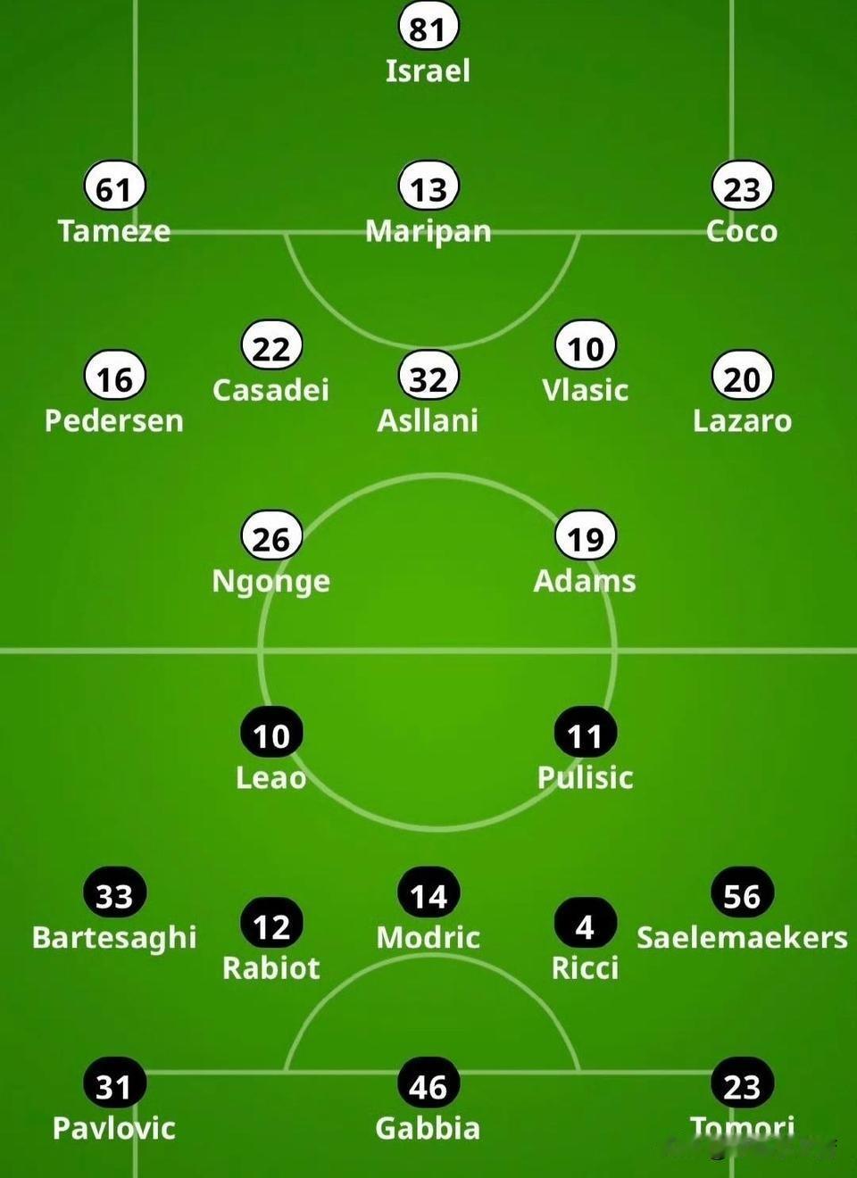 米兰与都灵之战阵容预测。普利西奇已经完全恢复健康,他将回到首发阵容,福法纳虽然已
