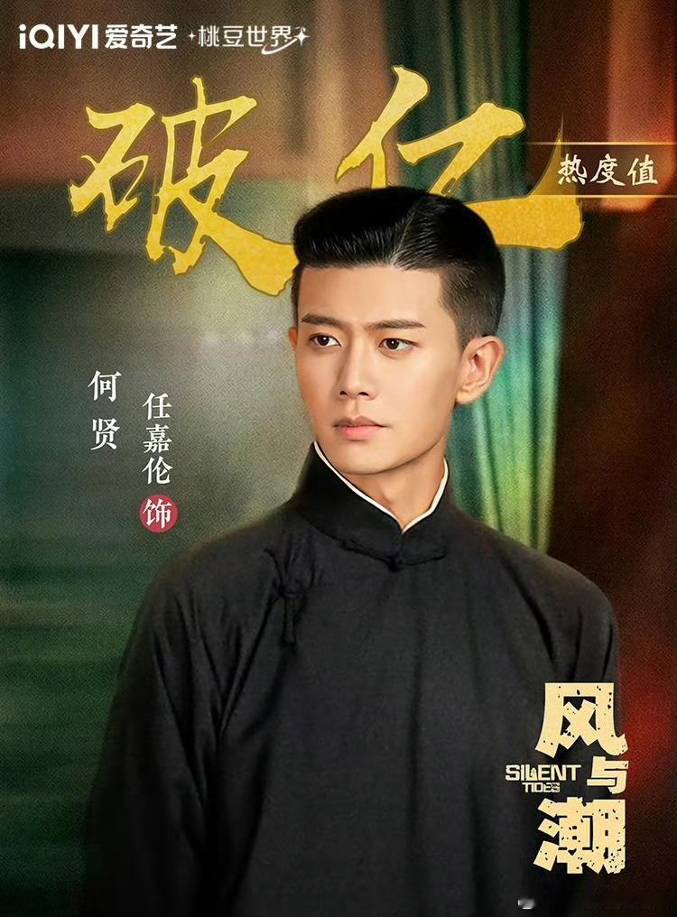 爱奇艺角色热度离正式播出还有两天,角色热度就破亿了!恭喜何贤(《风与潮》男主角,