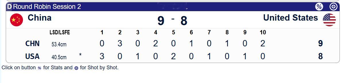 总感觉第十局应该是3分,中国要计较的话,中国的三近可以跟美国一近量一下,最后10-8赢,不过也没有必要了,如果有必要,晓明再旋/打一个,比分就是11-8。毕竟冰壶又不算小分,只看胜场。没必要学平昌冬奥俄奥女队,在赢了中国的情况下还要找圆规看看能不能多拿一分(结果还没拿到)。