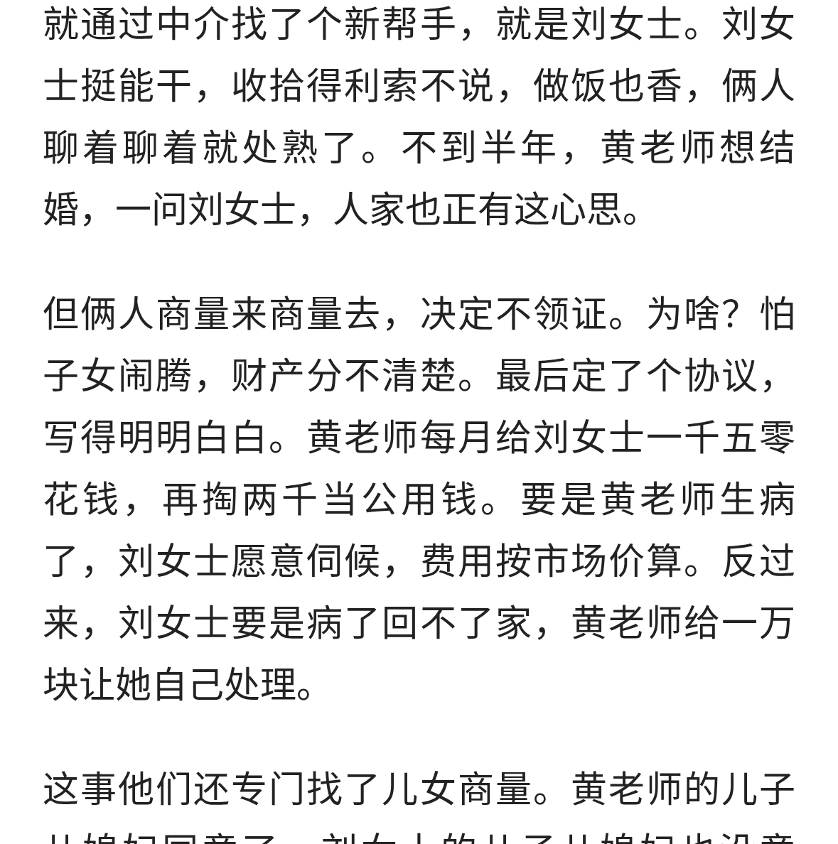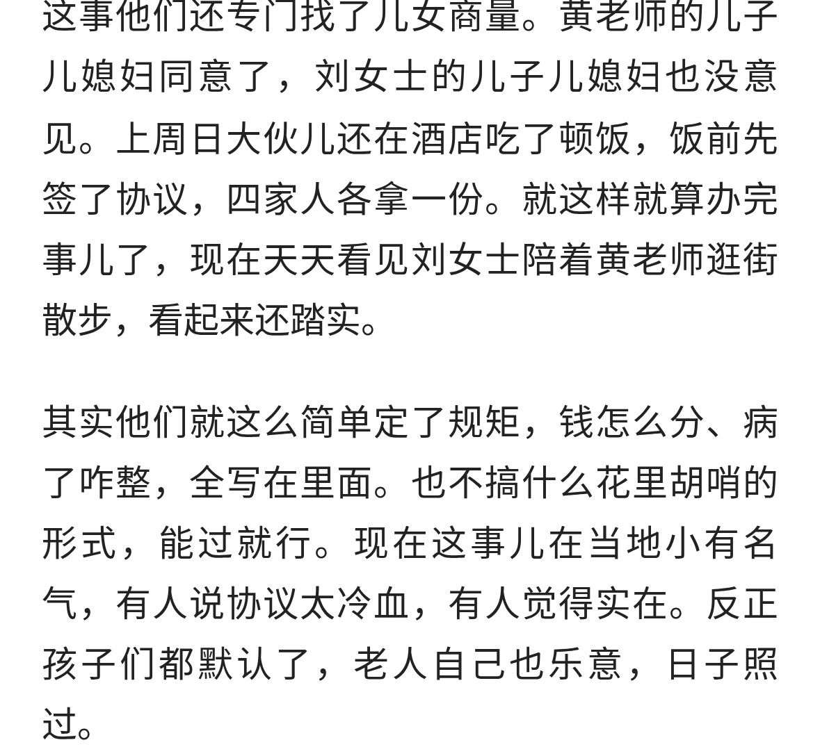 开门见山,最近越来越多老年人开始流行“搭伙过日子”。 两个人不结婚...
