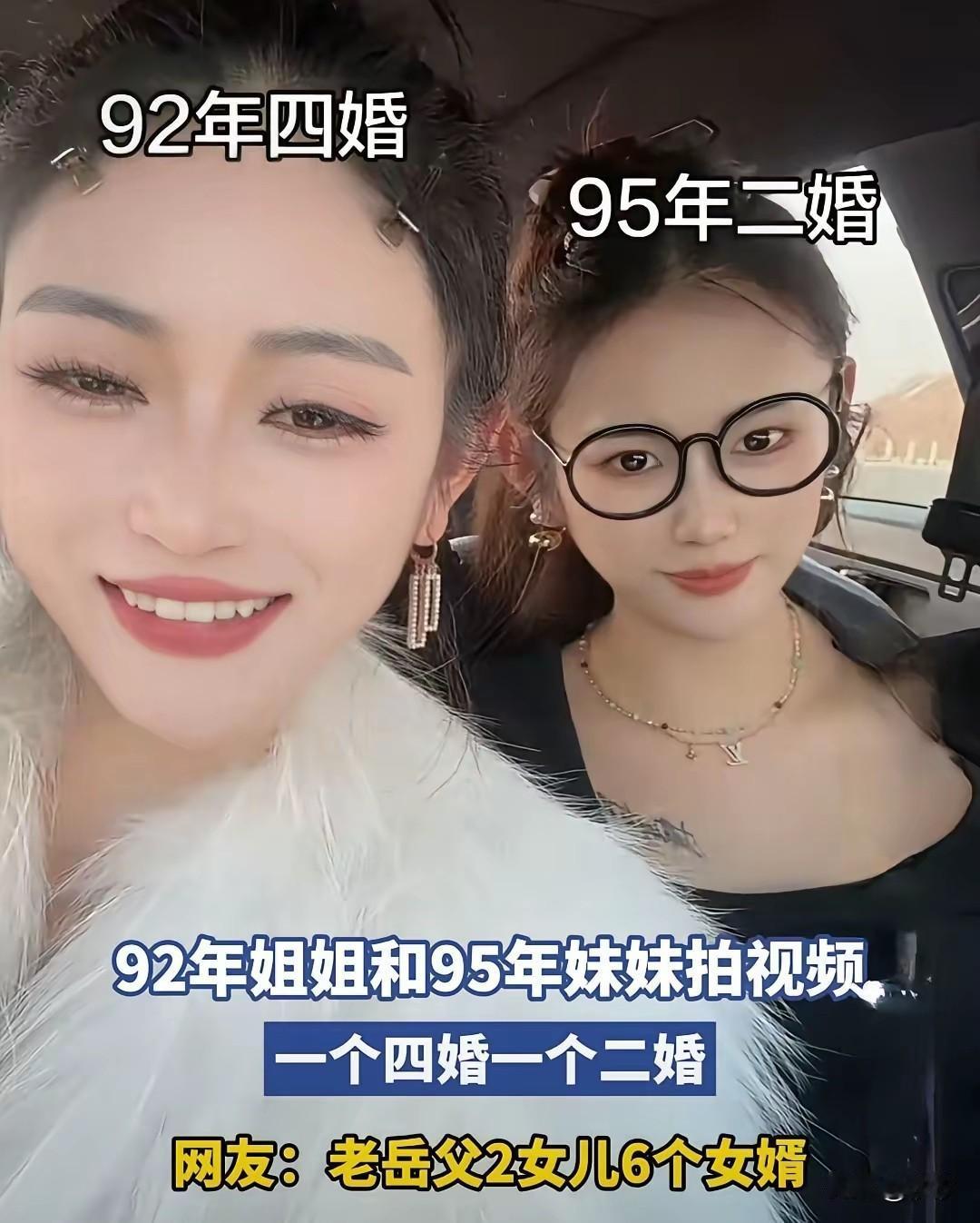 云南这俩女孩儿也太会炫耀了, 一个自称是92年姐姐, 结过四次婚, 一个自称是95年妹妹, 结过两次婚, 这俩人加起来都结过6次婚了, 姐姐和妹妹还真是一家人, 结婚离婚成了家常便饭, 估计十里八乡都认识了, 除了好看一无是处, 别人二婚三婚都不想往外说, 这两姐妹倒好, 还拍视频炫耀, 生怕附近的人不知道, 这老丈人也是有福, 两个女儿,6个女婿, 每次结婚都要请亲朋好友, 那彩礼收的乐开了花, 可背后怎么说他们家的? 想必他们都清楚, 只不过是彩礼收的过瘾了, 名节根本不在乎, 大家对于这两姐妹炫耀结婚次数怎么看? 云南姐妹 云南网红三妹 云南红河姑娘 云南四姐妹 贵州三婚女 云南娇姐 云南单身姐妹