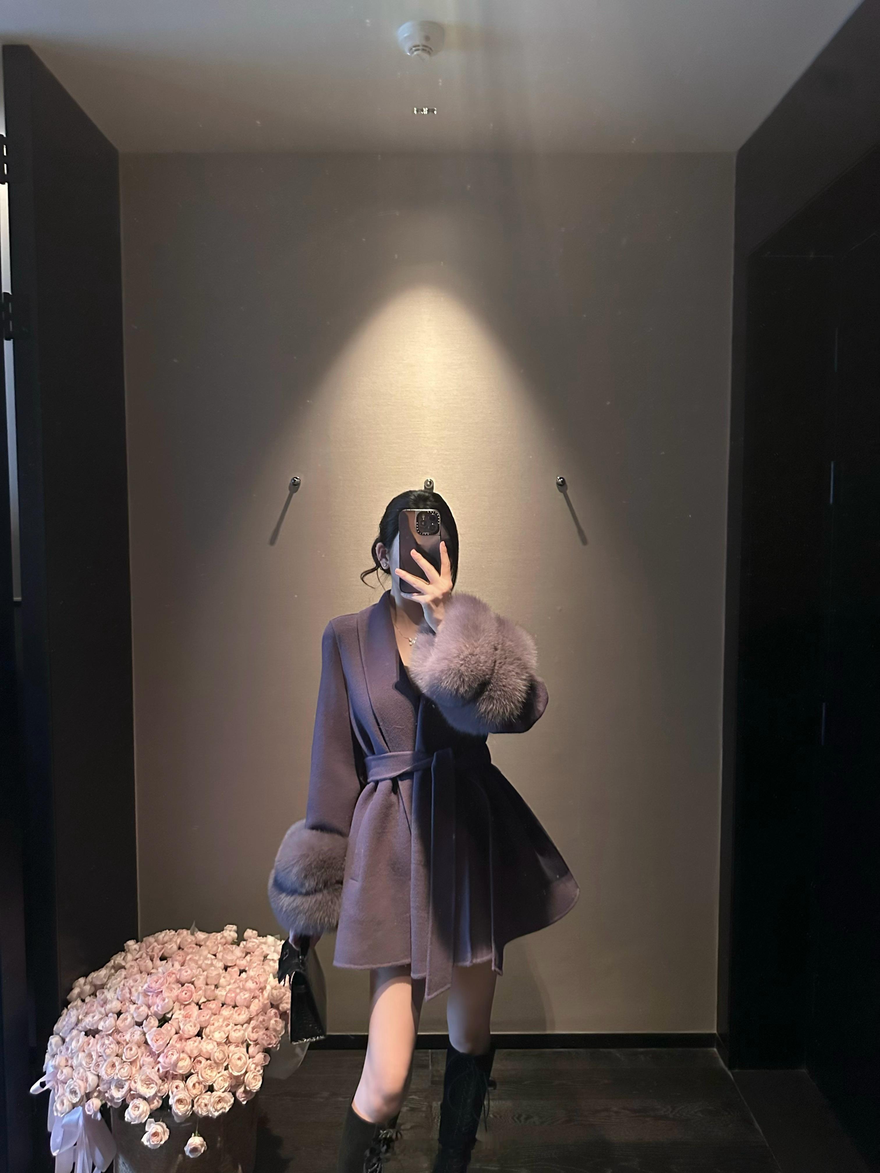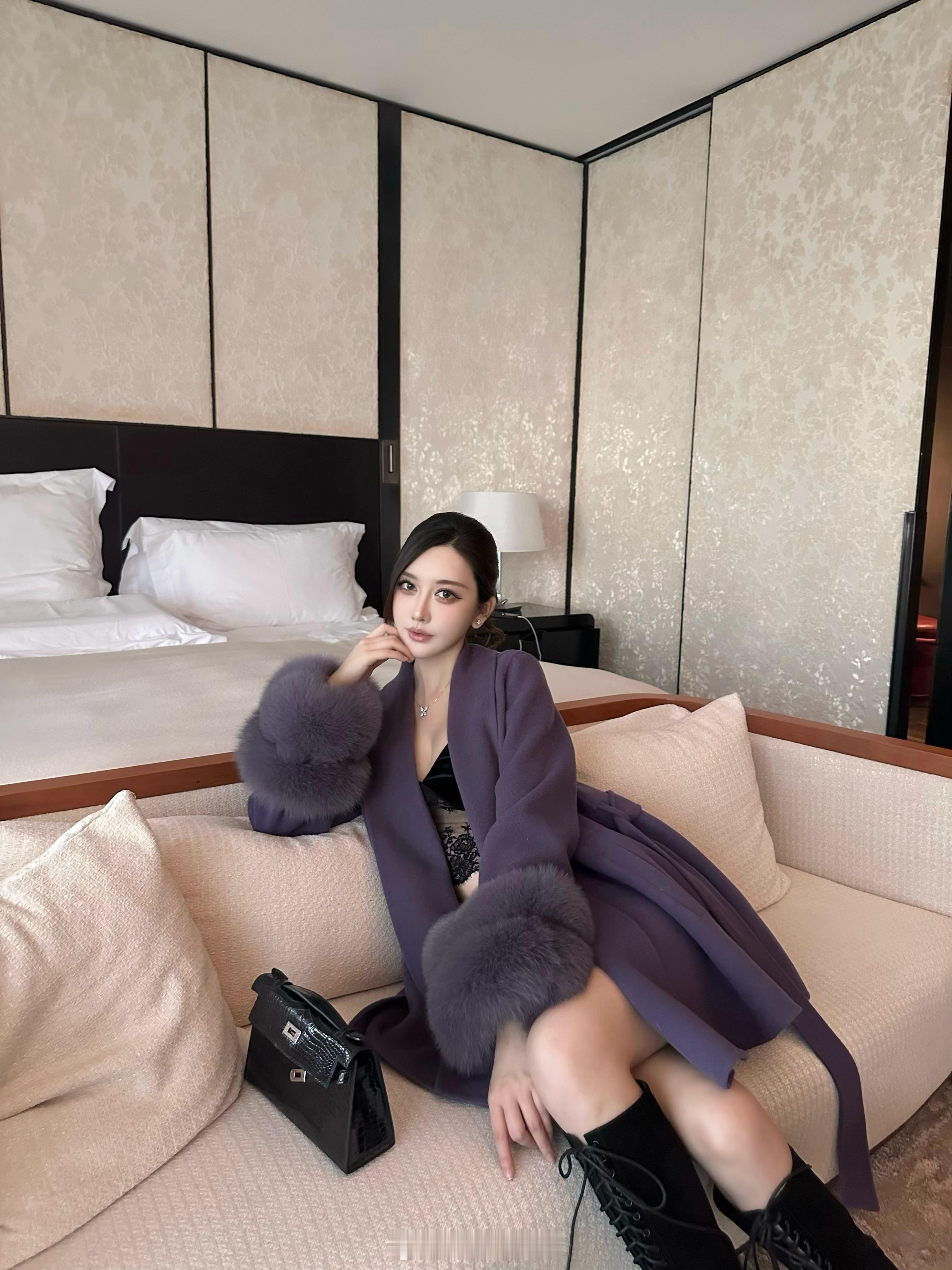 电梯自拍,紫色蕾丝上衣搭配黑色牛仔裤,优雅气质满满!💄👗👠