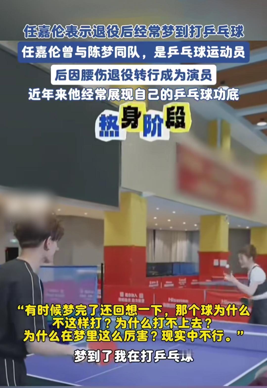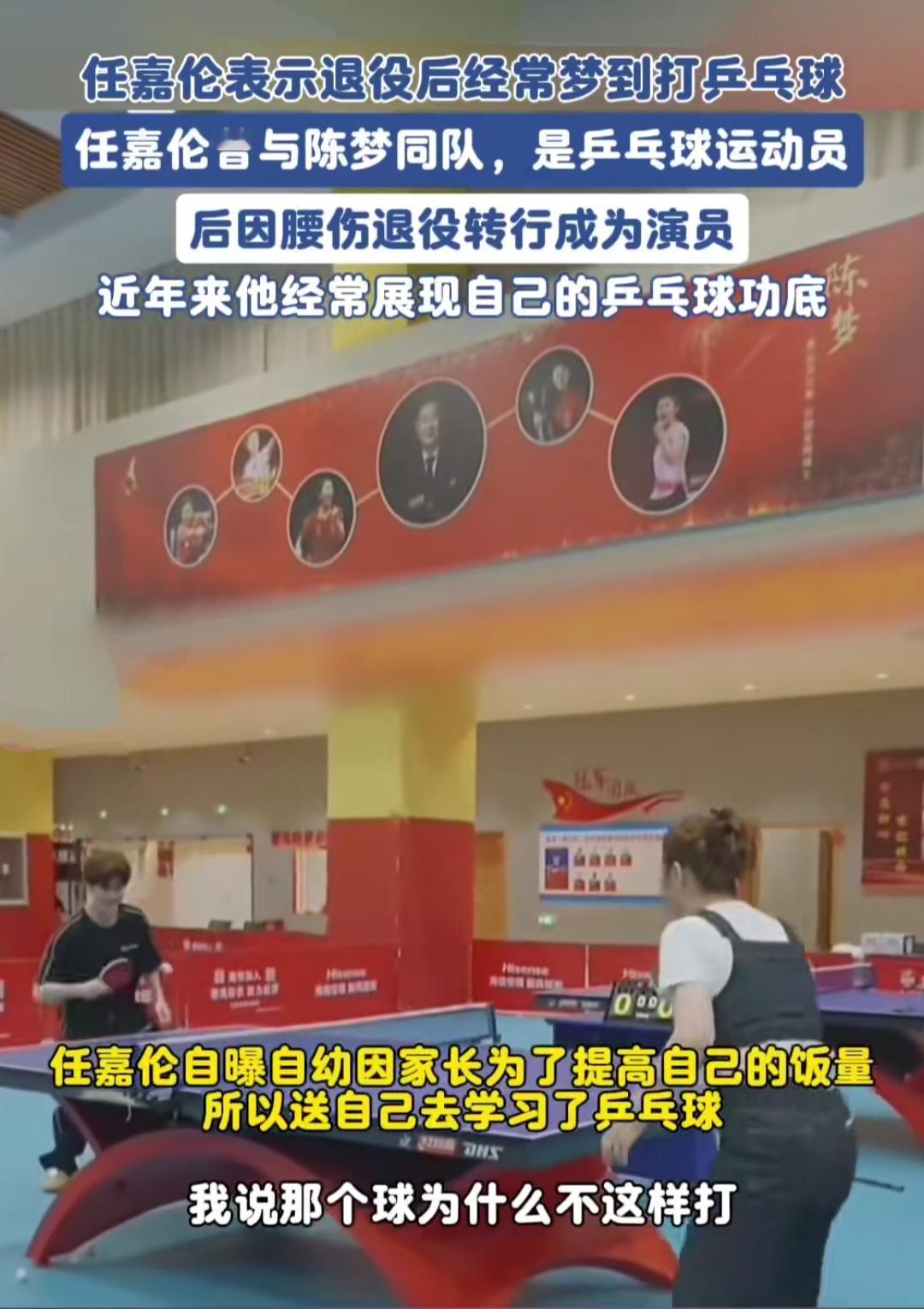 谁能想到演员任嘉伦,当年是和陈梦同队的乒乓球选手?他说退役20年总梦到打球,醒了还琢磨“那球为啥不这么打”,这细节太戳爱过的人了。 小时候为了多吃饭被送进球队,后来因腰伤转行演戏,可球台的影子从没淡过——现在偶尔露两手,功底还在。梦到的哪里是球啊?是十几岁在球台边挥拍的日子,是没说出口的遗憾,是藏在另一种人生里的旧热爱。 很多人心里都有这么个“没打完的球”:不是没得到,是曾经投入过的时光,早成了本能的一部分。任嘉伦的梦,是所有把热爱藏进生活的人的共鸣——有些事儿,哪怕没走到底,也会跟着你一辈子。