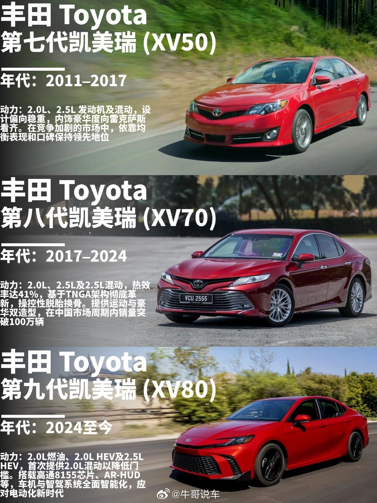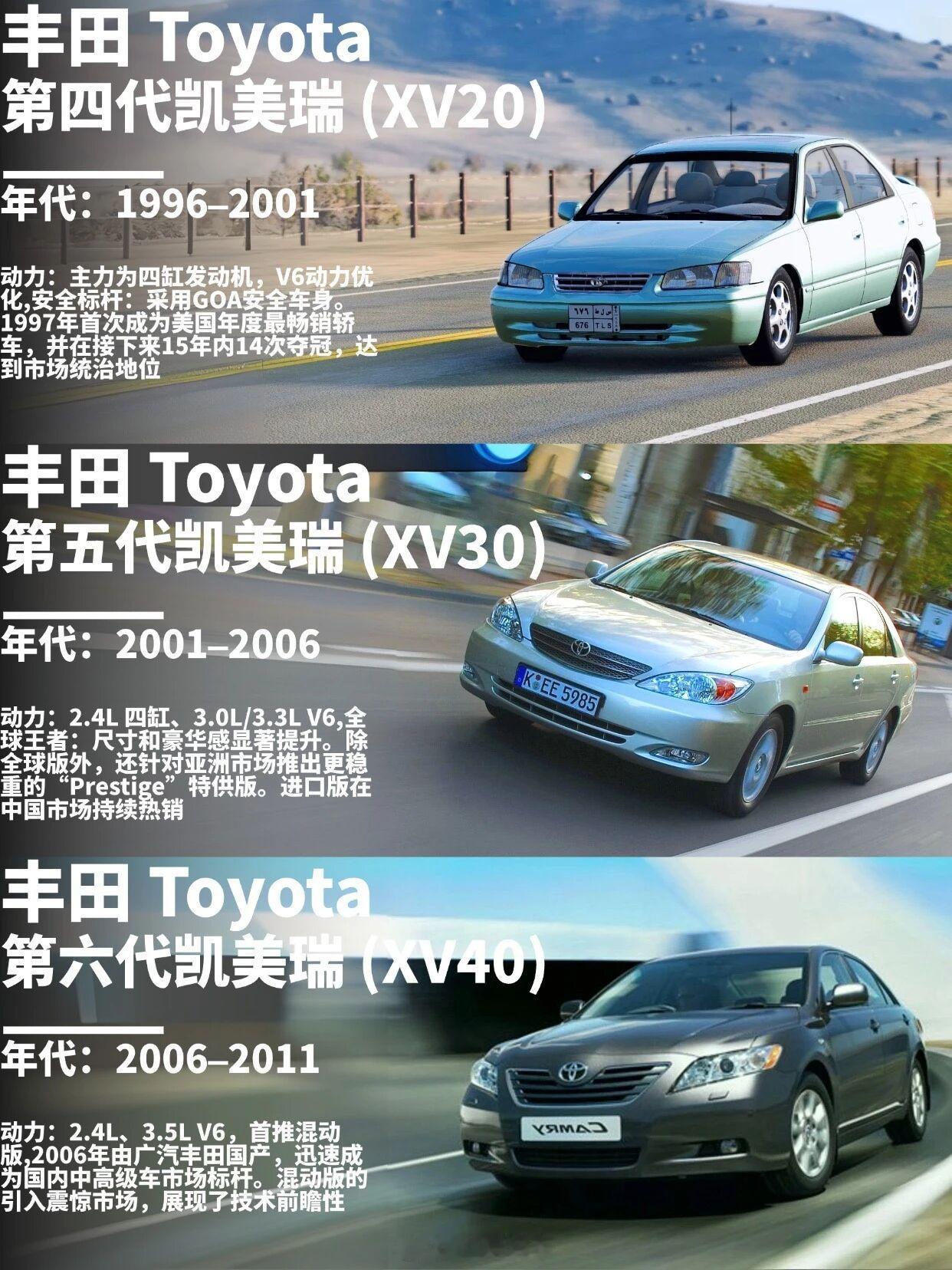 历代佳美一览。个人觉得六代最经典,yyds!!我与汽车的日常