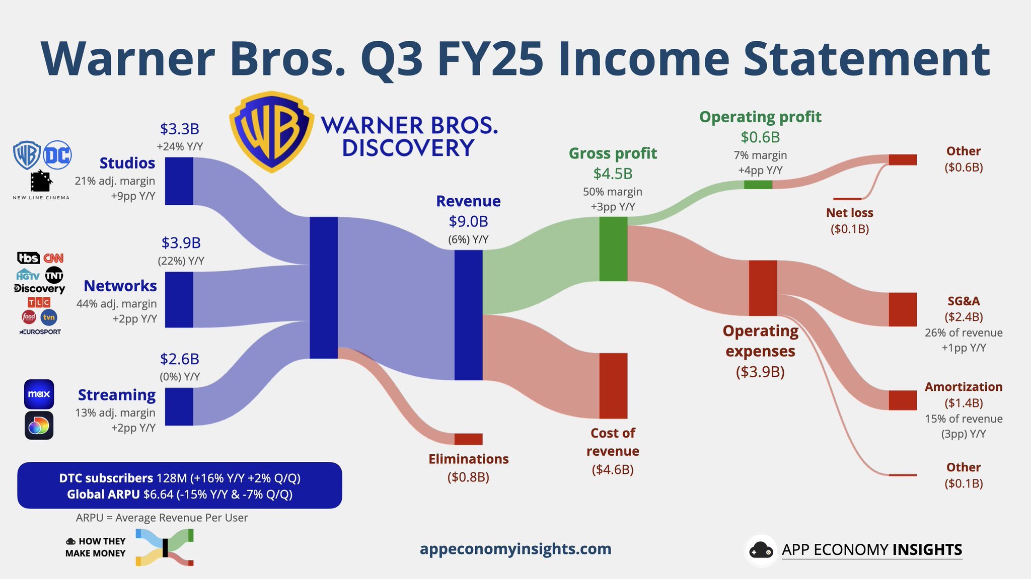史诗级并购:Netflix 以 720 亿美元收购华纳兄弟(含 HBO 全家桶),收购后, Netflix 一口气解锁的“好莱坞顶级 IP 仓库”这笔交易本质上是 Netflix 从“分发生意”正式跳升为好莱坞最强“内容帝国” 的节点。华纳兄弟的 IP 足以支撑未来 20 年的宇宙扩展:收购后,Netflix 将拥有以下顶级超级 IP(可无限续作 / 宇宙化 / 重启的 S 级资产)⚡️ Harry Potter(哈利·波特)🦇 DC Universe(蝙蝠侠 / 超人 / 小丑 …)🐉 Game of Thrones 权力的游戏宇宙💍 Lord of the Rings(魔戒电影版权)💊 The Matrix 黑客帝国🦍 Monsterverse(哥斯拉 x 金刚)长期印钞机(高收视、可做衍生的剧集资产) ☕️ Friends(老友记)⚛️ The Big Bang Theory(生活大爆炸)📺 Succession(继承之战)🌴 The White Lotus(白莲花度假村)✈️ Euphoria、True Detective、Westworld 等 HBO 旗舰剧系这波下来, Netflix 直接锁定“全球内容王者”之位,迪士尼都得往后稍稍。