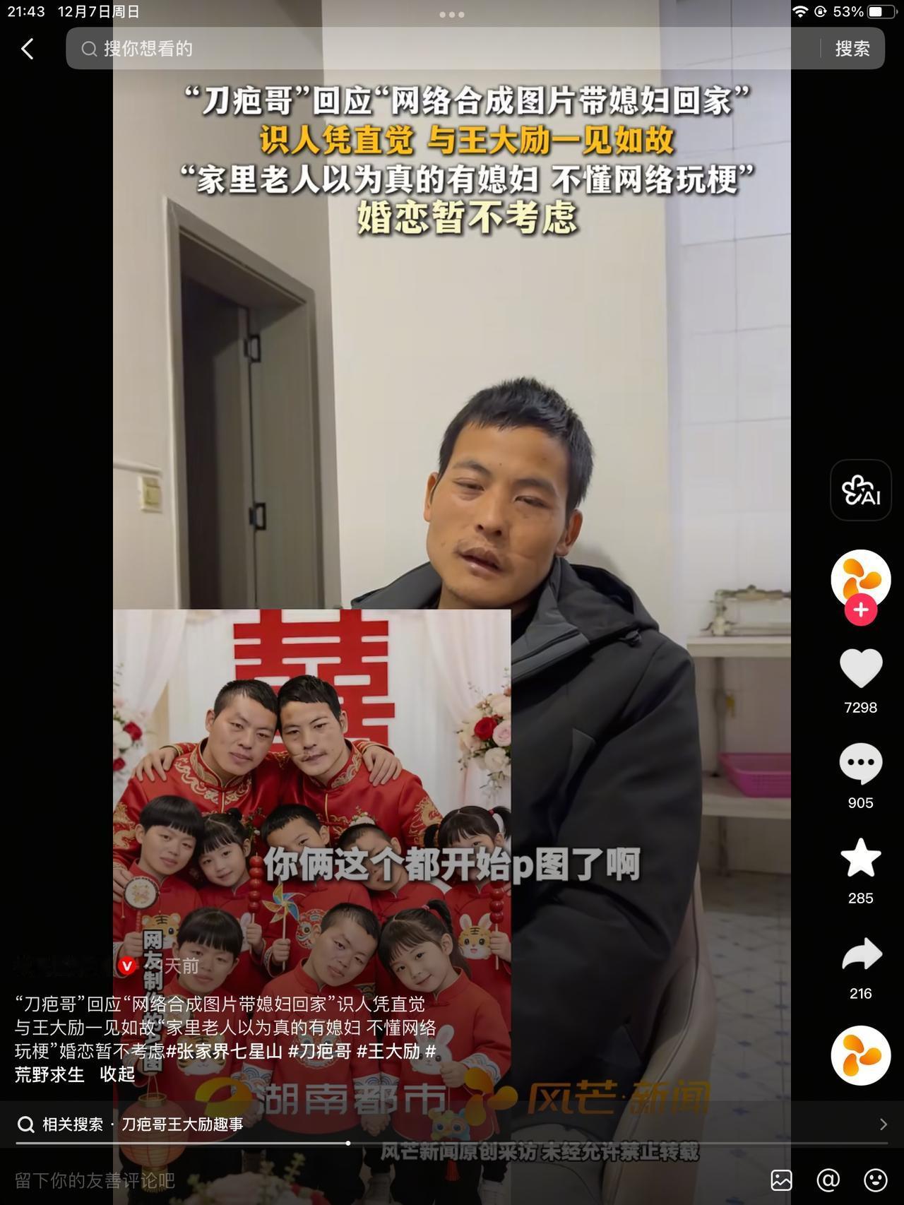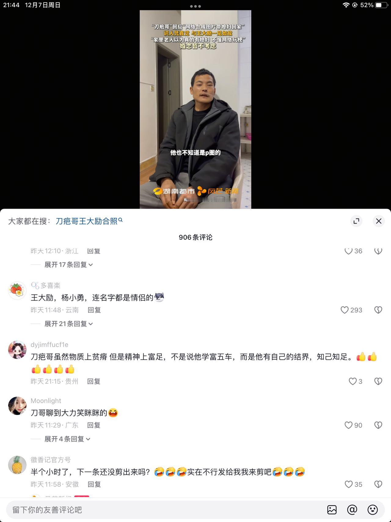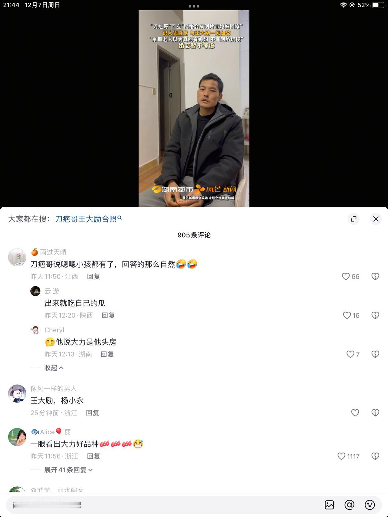 笑不活了,网友把王大励许配给了刀疤哥。连婚纱照都P好了!图五是女版的王大莉!笑死了,名字都给换了。很贴合实际! 而且杨小勇说啥,王大励挺好。从半决赛下来就知道大励很好。因为他只是读书少,他不是傻子。她知道他对他好。大励真不错。懂规则,有经验,该说不说的,把刀疤哥照顾的很好。 后来,刀疤哥在比赛中主动说想大励了,大励把他照顾的很好。那会儿,他心里,什么都懂了。但是你不能埋怨,对你好是正常的,对你一般也是太正常的。不是每个人都是大励。 搞笑的是,刀疤哥家里的老人,以为他俩真成了,以为这就是刀疤哥女朋友。回家了,发现没领女朋友回来。整了个乌龙!记者问他时,他接话,说是啊,孩子都有了!笑死。他好真诚啊!荒野领导怎么说的,就是别人说没见过世面,陈小勇没见过世面是一句好话,说明他真的真实,干净。这正是他的优点。很多人喜欢他,也是感觉他说话不过脑子。当他真的很原始的,很真诚的,不过滤的把话说出来,你真的好喜欢他。 这是稀缺资源,这种人,好多年都觉得绝种了,不再有。却偏偏他杨小勇就有。