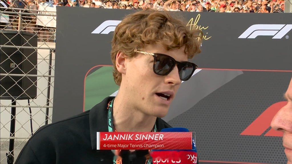 辛纳接受天空体育采访:“很高兴来到这里。对三位车手来说,这一站至关重要。“诺里斯目前占优,但赛道上一切皆有可能。我们期待一场精彩的比赛。”阿布扎比大奖赛(注:世界著名网球运动员辛纳受邀参与F1阿布扎比大奖赛现场采访)网球talking大会网球