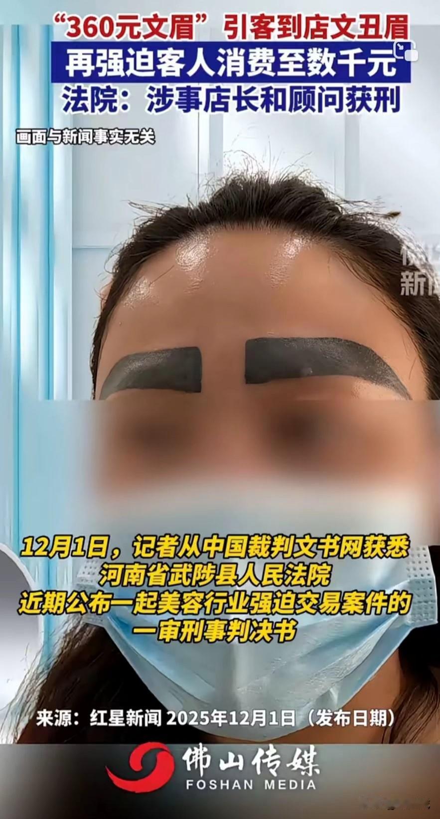 花360元纹眉 这纹的是屠龙刀吗 谁见过纹这样眉的 这是拿客人在练手吗 还是说客人长的像纹这种眉的 花360纹眉也就算了 居然还纹的如此之丑 丑也就算了 还强迫客人消费数千元 这是把客人当猪了吗 越看这眉越像屠龙刀 这不是在糟蹋人呢嘛 哪里有这样纹眉的