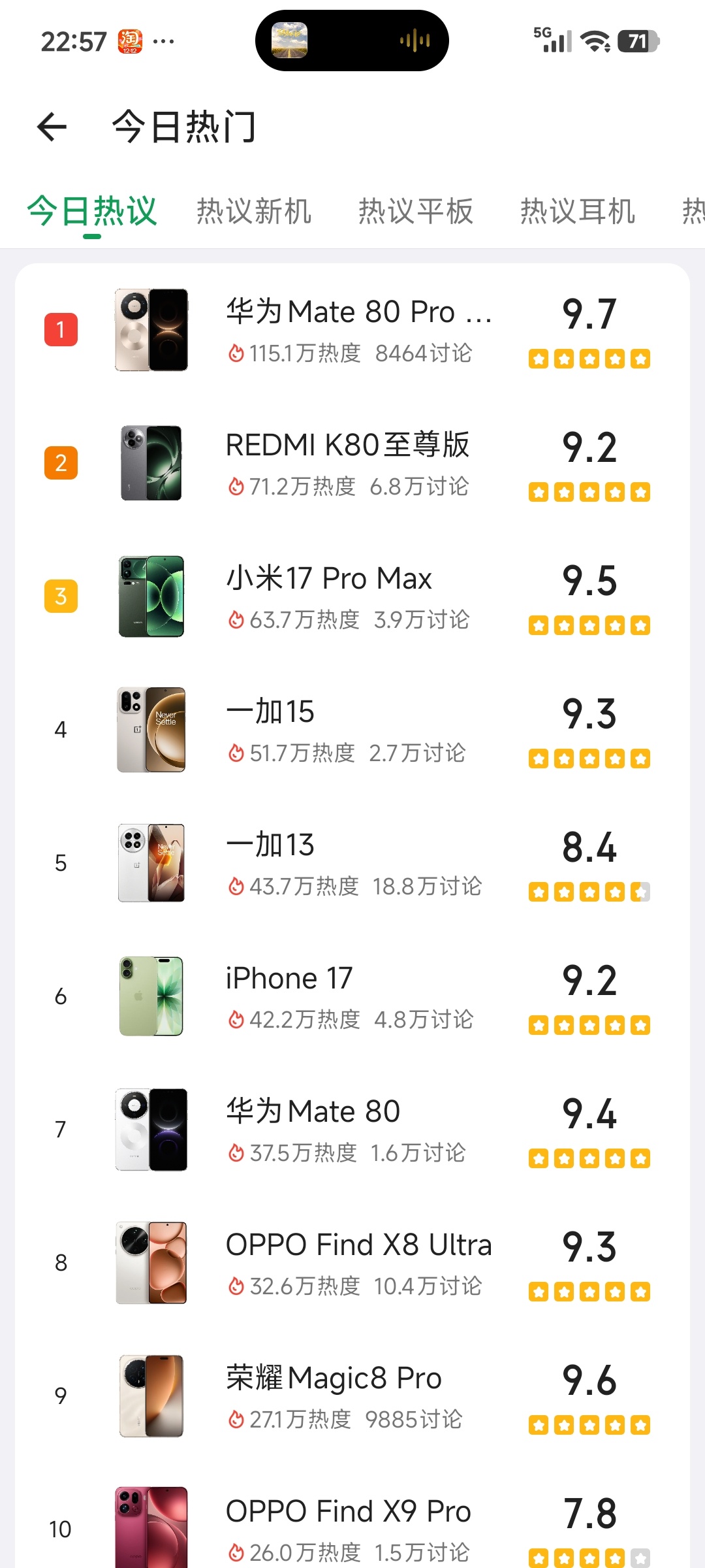 数码闲聊站 酷安今日热度机型排行榜!华为Mate80 Pro第一,REDMI K80至尊版第二,小米17 Pro Max第三!