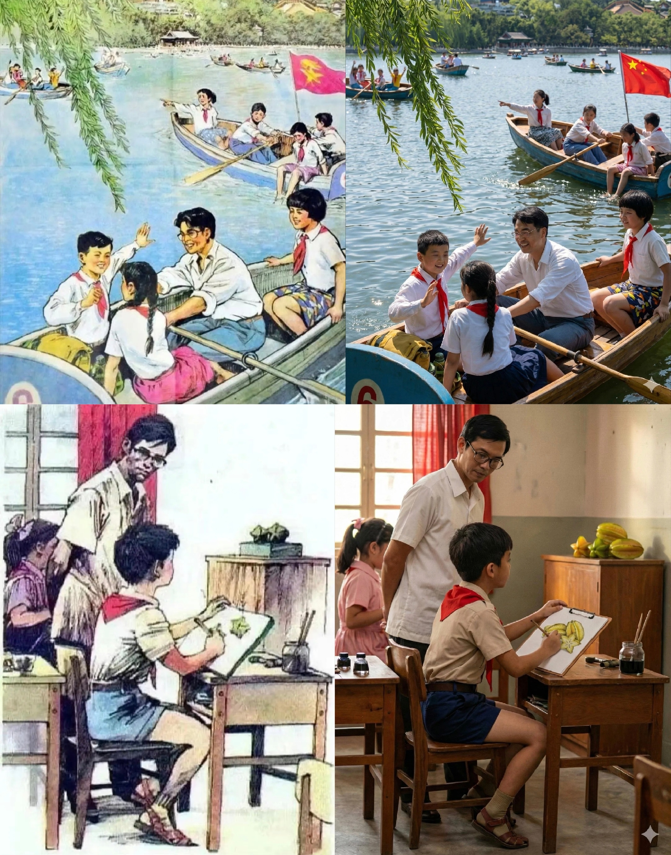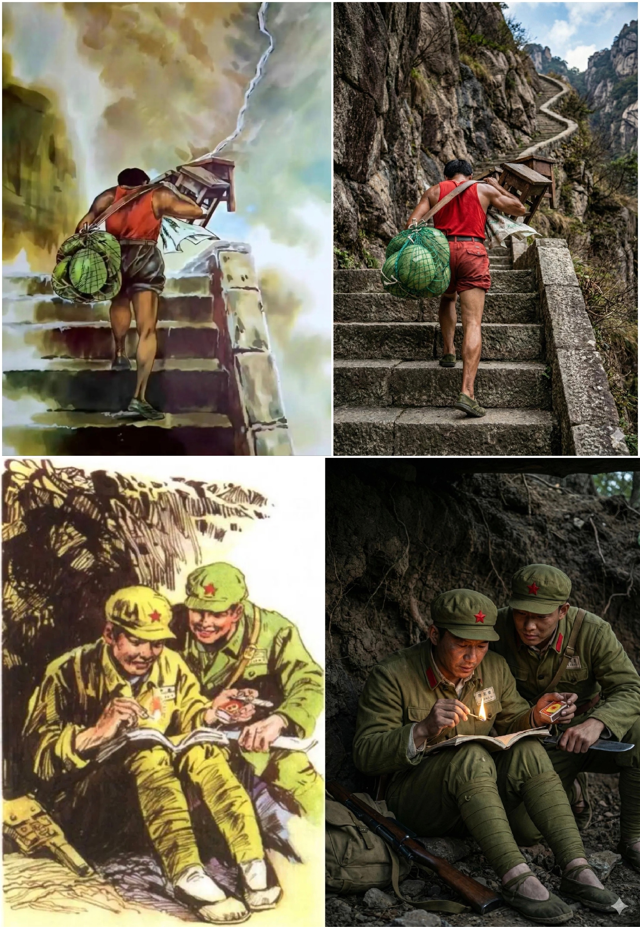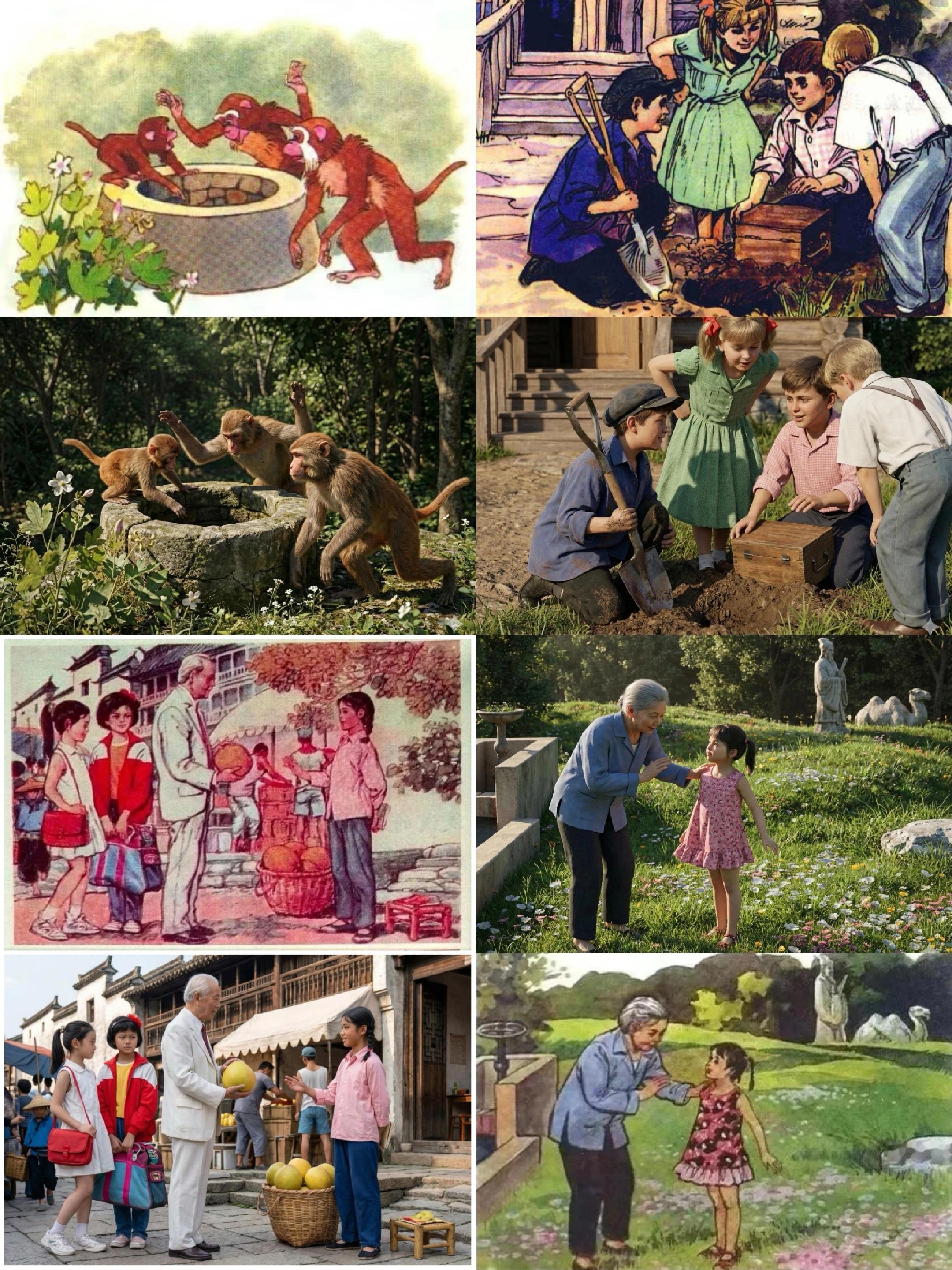 用AI还原80、90后语文课本里的插图 ,细节处还是有差别,看AI图多了,总是感觉“一眼假”。在我看来,漫画所能表达的意境,AI生成的实景图比不了,甚至AI图会让人产生“恐怖谷效应”,似像非像的AI图,人物的微表情、皮肤、光影都有偏差,心理机制上会有种本能厌恶,从而降低被欺骗的风险。科普满谈