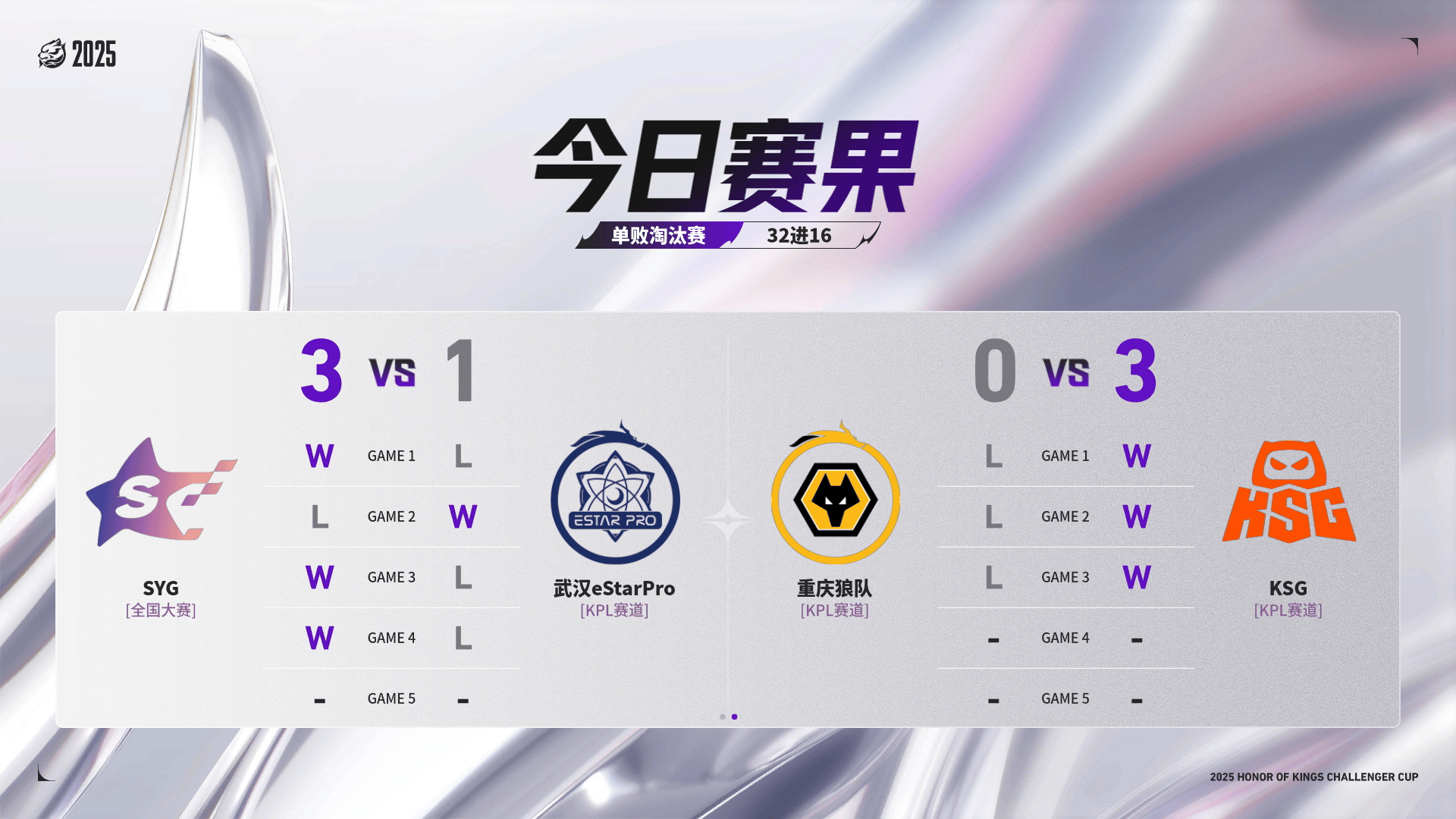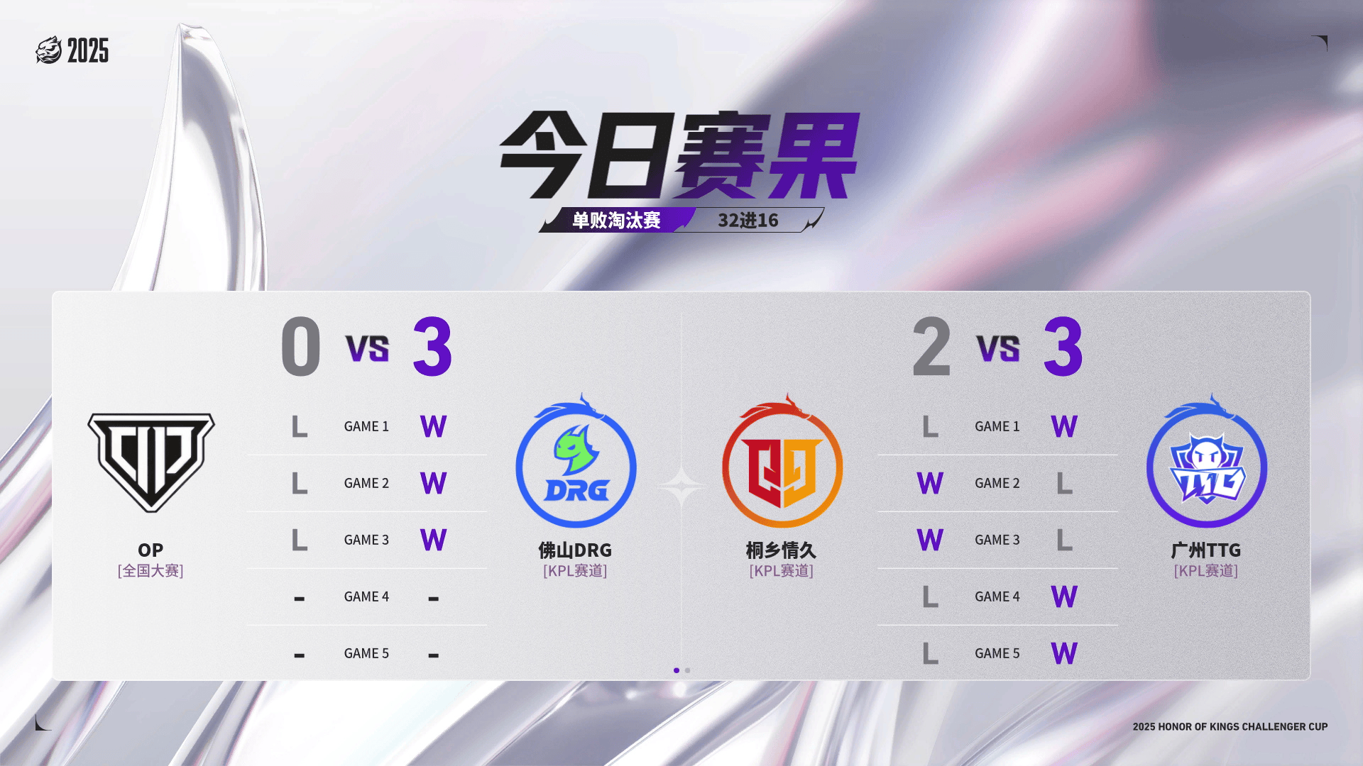 OP、桐乡情久、eStarPro、重庆狼队遗憾告别2025年王者荣耀挑战者杯淘汰赛舞台。