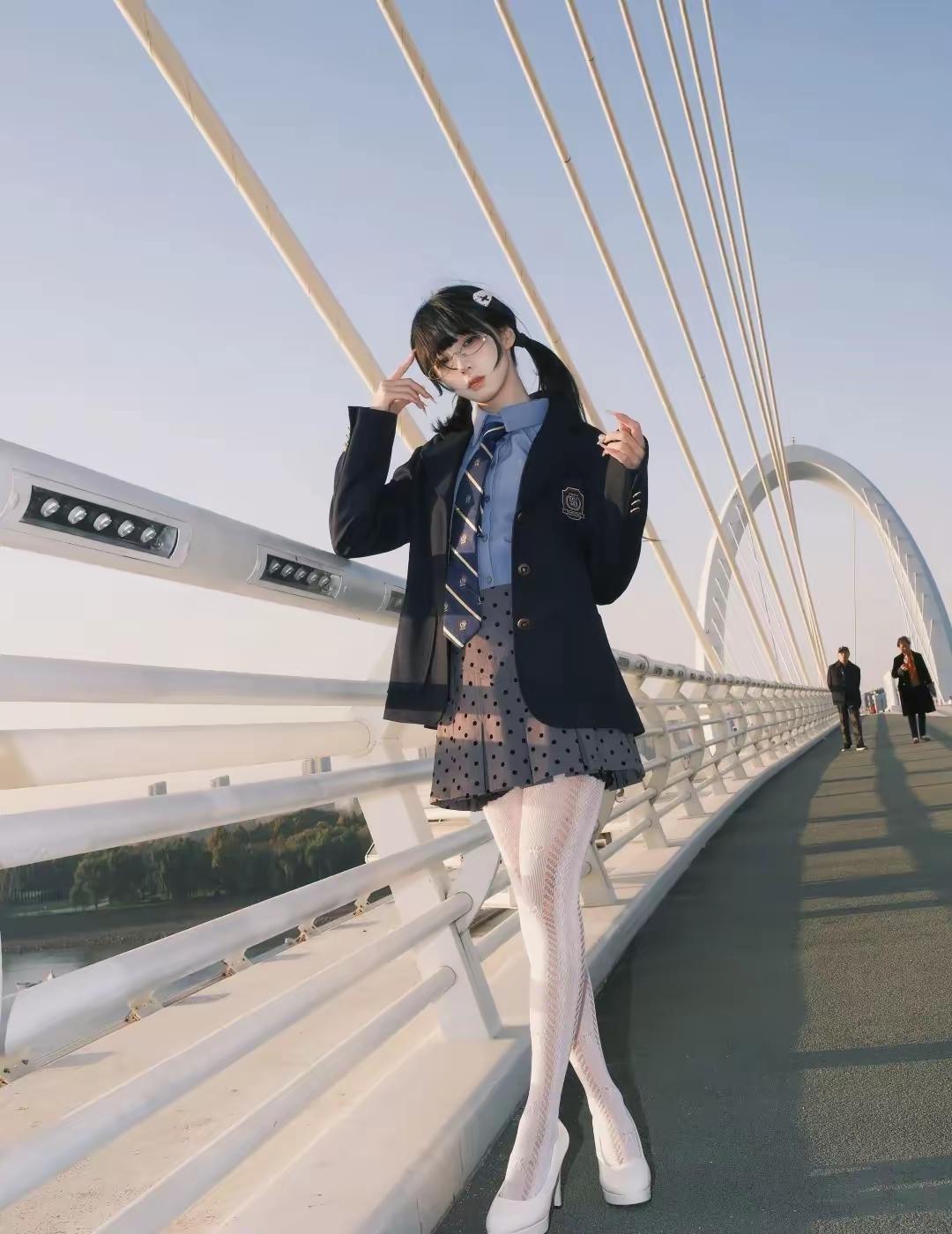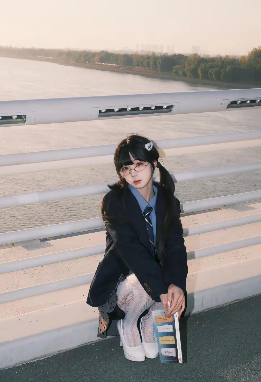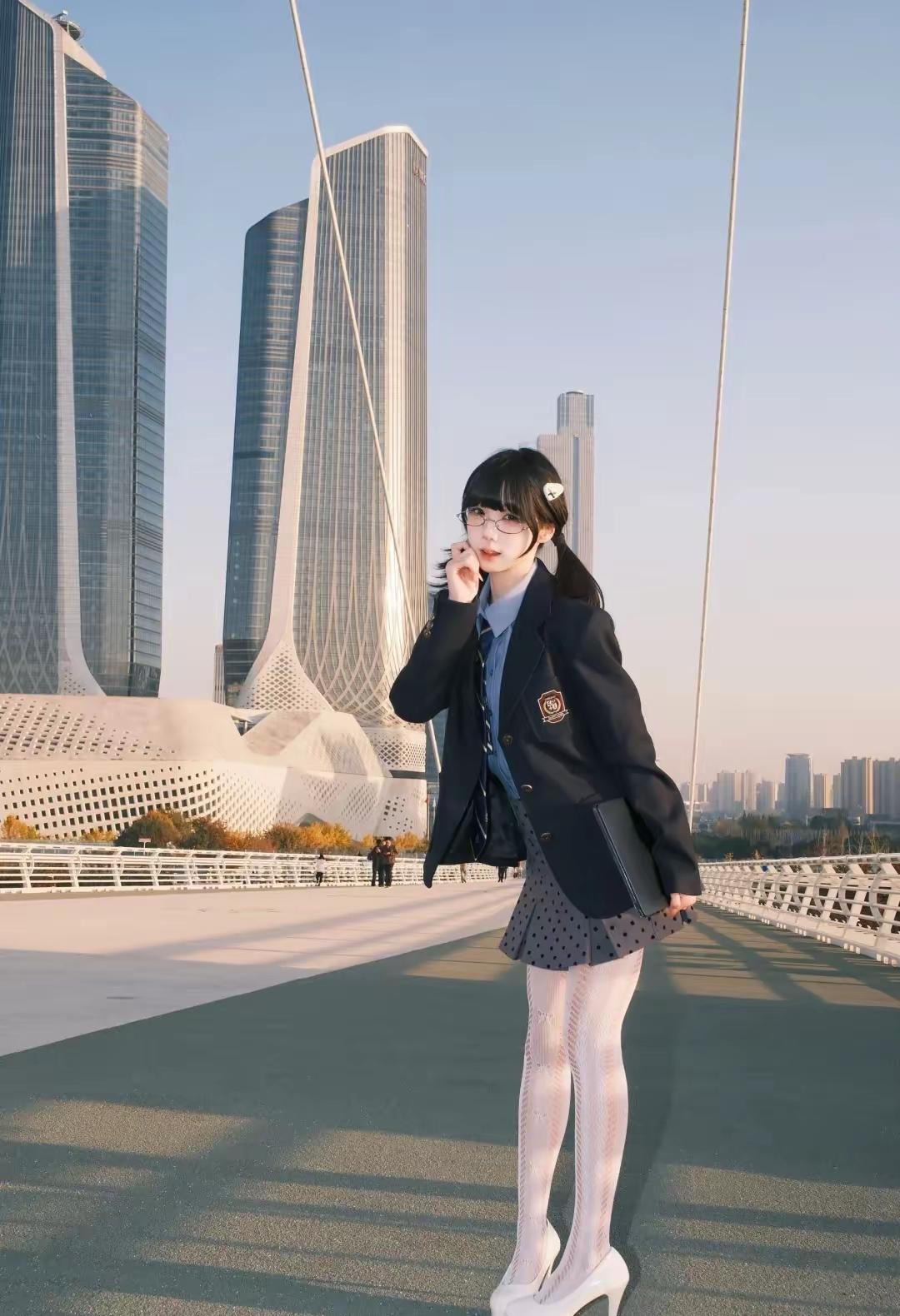 秋日校园少女,蓝白相间,落叶飘零白丝[话题]