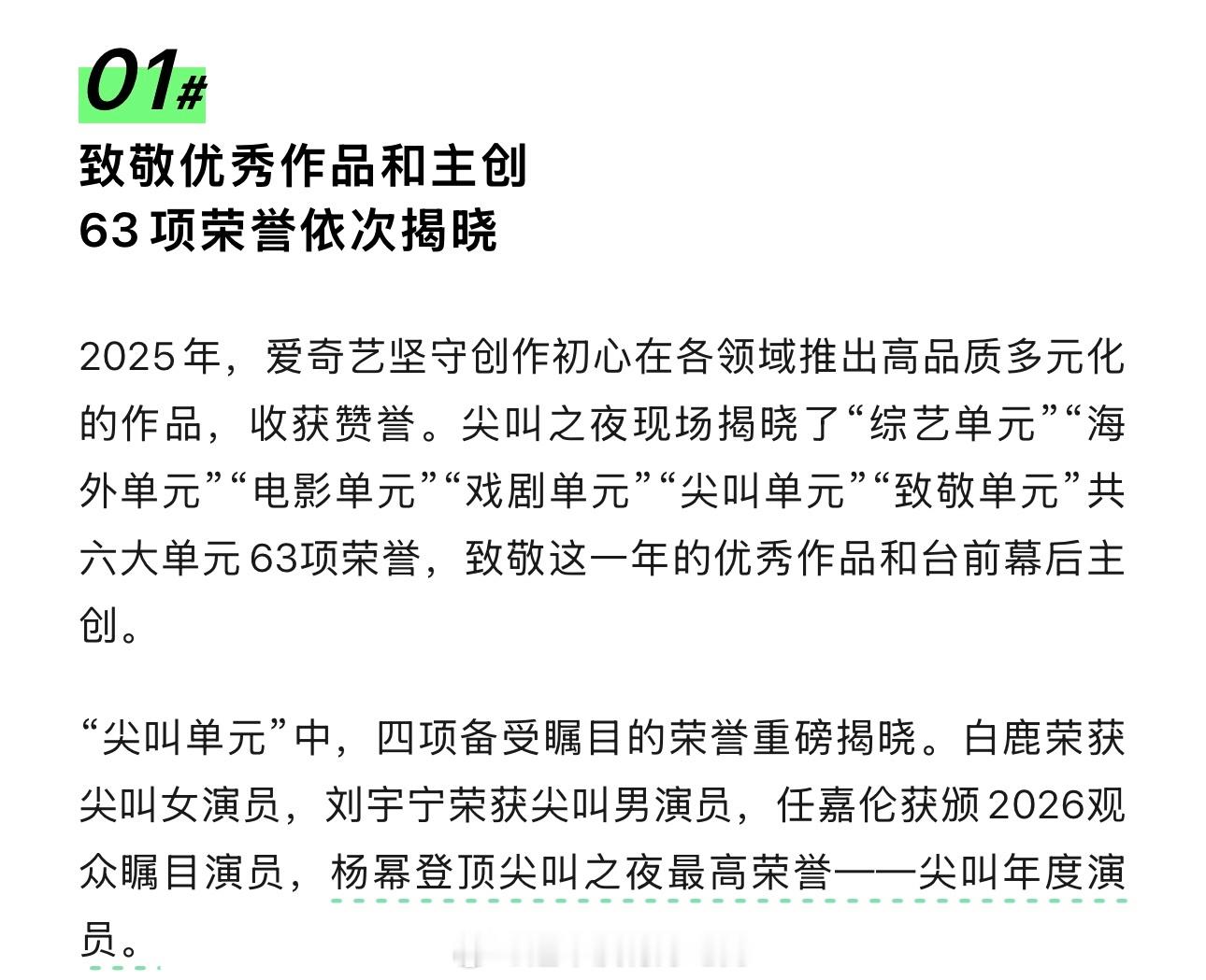 爱奇艺:杨幂登顶尖叫之夜最高荣誉