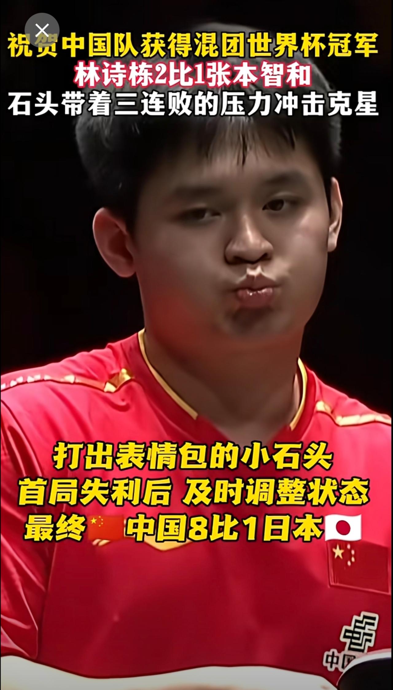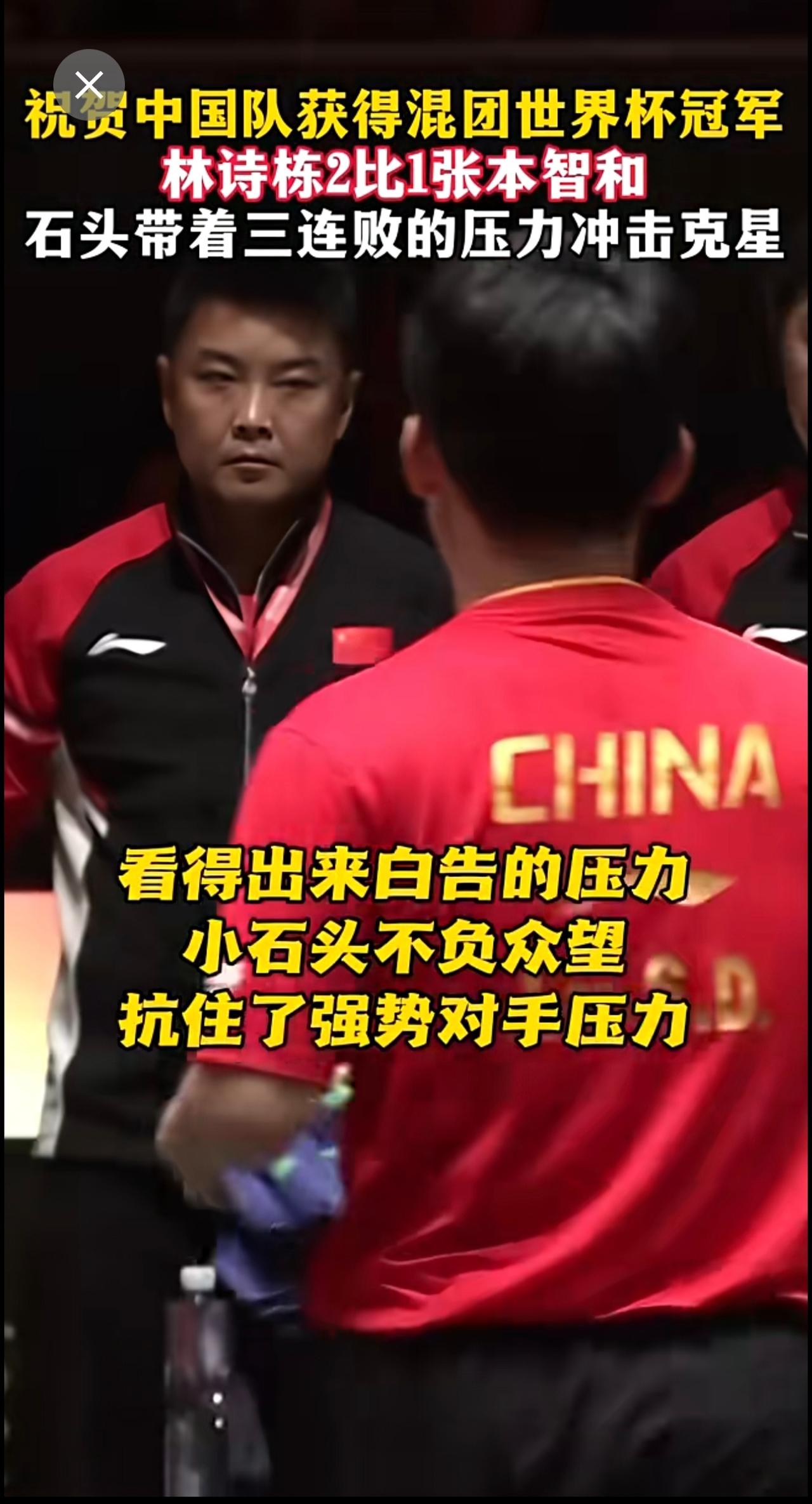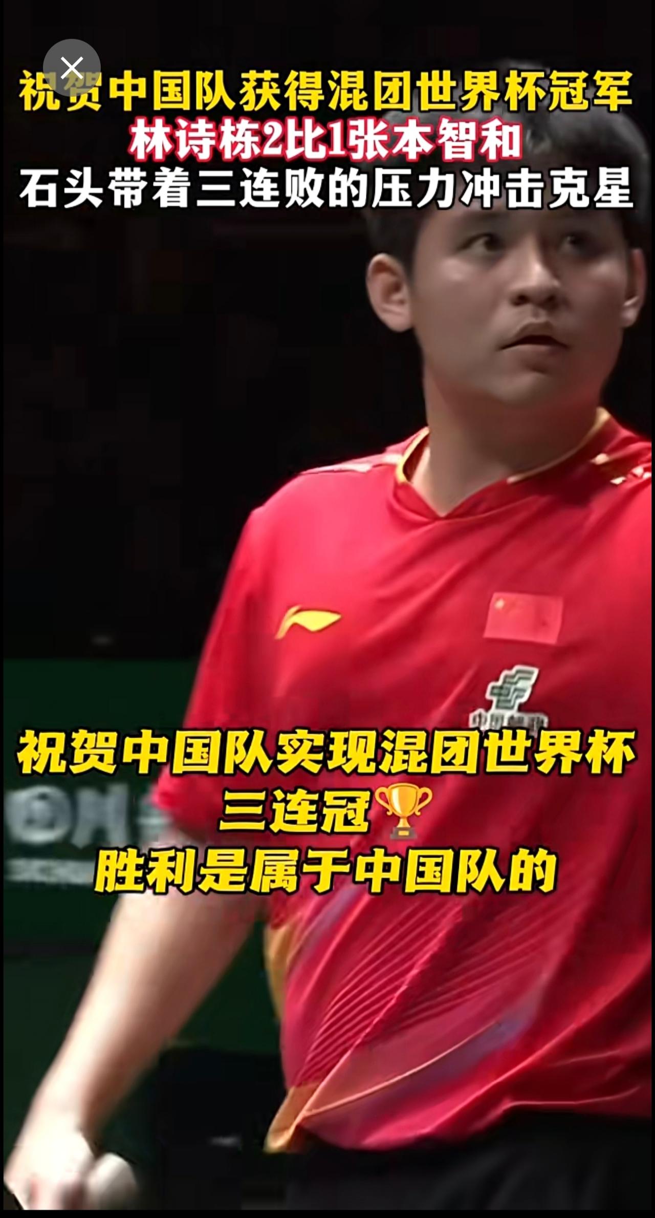 祝贺中国队获得混团世界杯冠军林诗栋2比1张本智和🔥石头带着三连败的压力冲击克