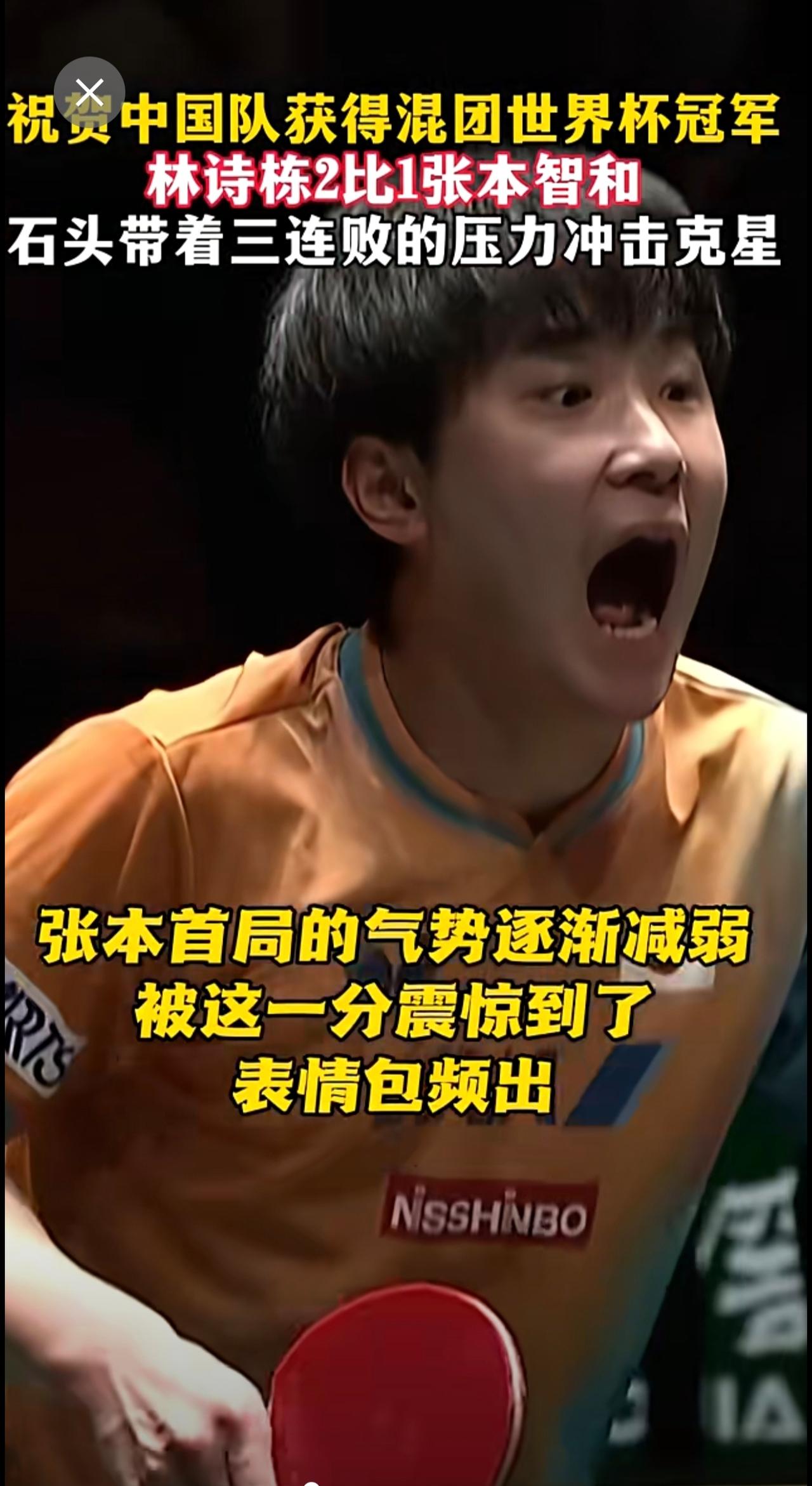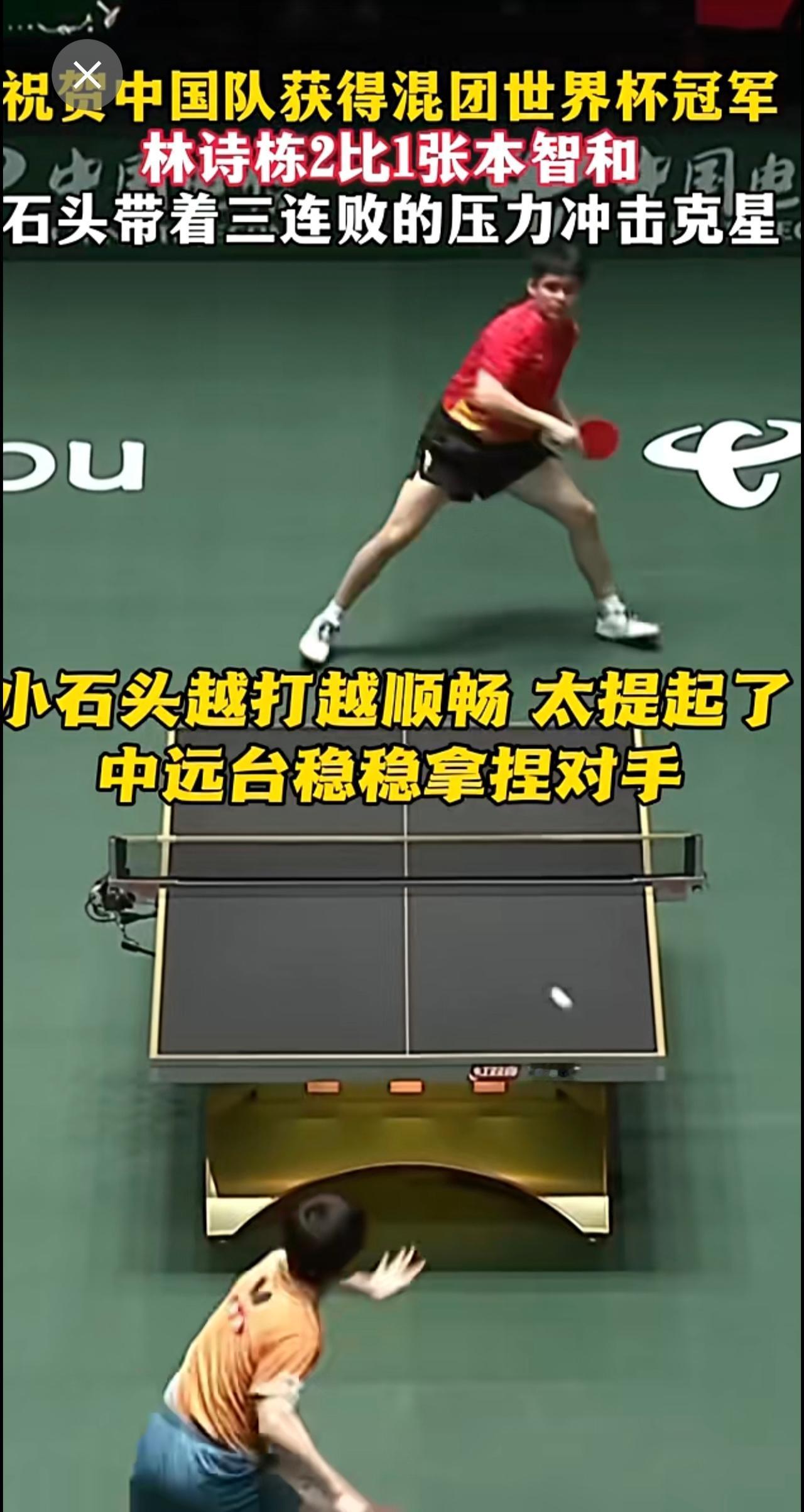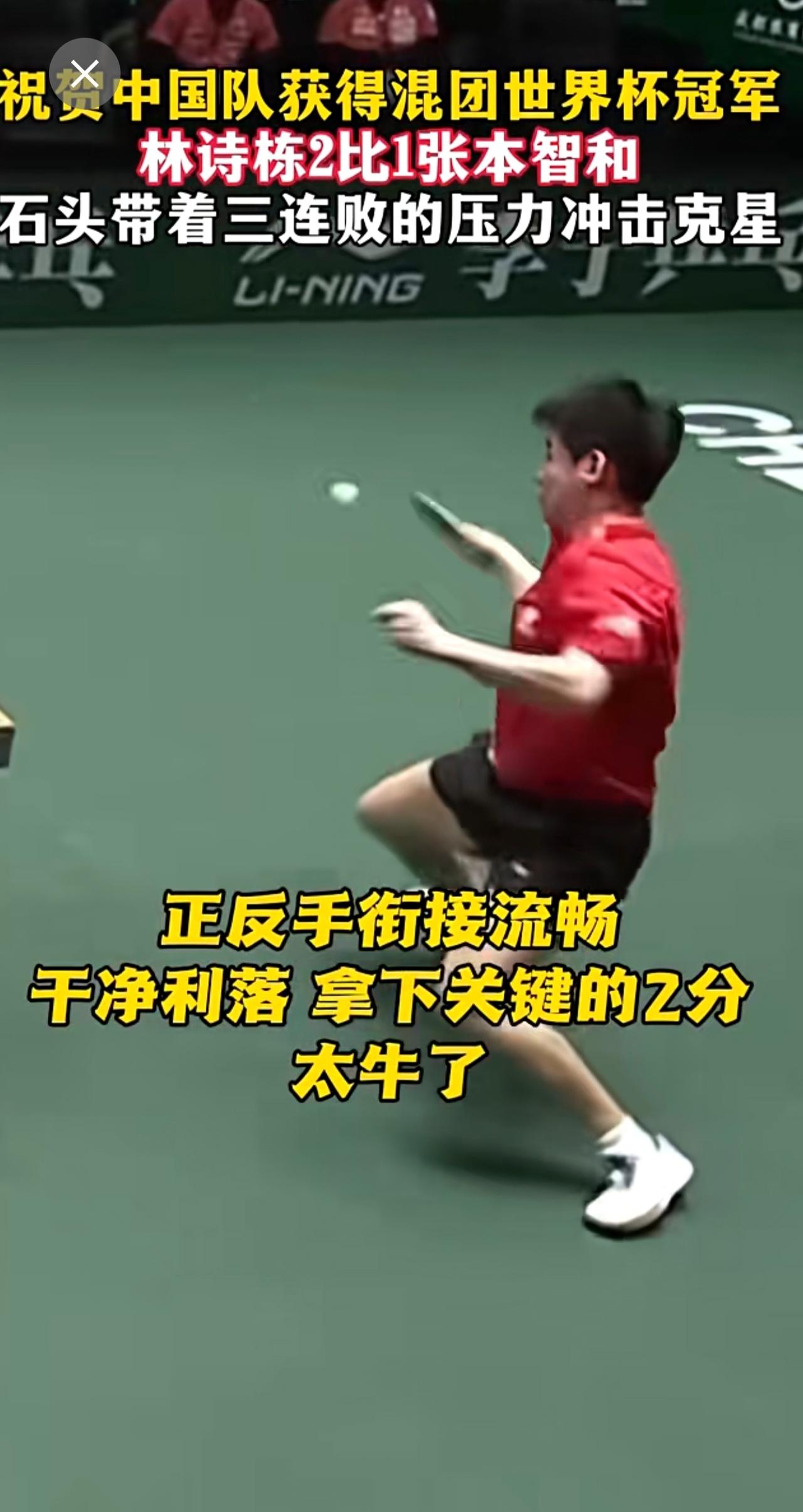 祝贺中国队获得混团世界杯冠军林诗栋2比1张本智和🔥石头带着三连败的压力冲击克