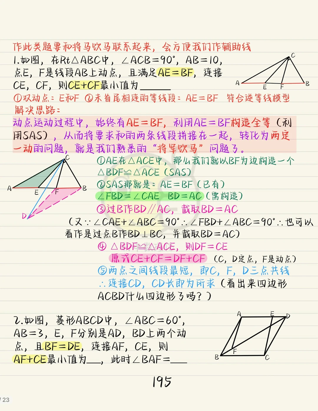 逆等线:双动点,首尾未相连 造成思路:造全等转化为“将军饮马”问题