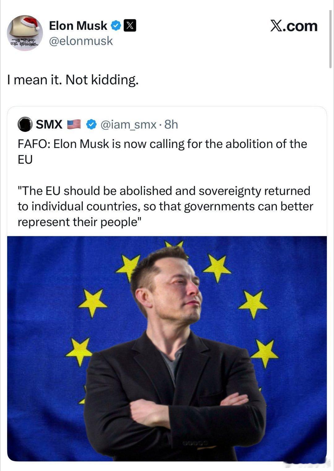 震撼世界的48小时12月5日:欧盟对X公司罚款1.2亿欧元。这是首次依据《数字服务法》开出的罚单。12月7日:X公司的所有者呼吁废除欧盟。“我是认真的。不是开玩笑。”浏览量达800万次。点赞数19.4万,还在不断攀升。这并非一场监管争议。这是全球公共广场的所有者——同时担任美国政府高级官员——公开呼吁解散一个由27个国家组成、管理4.5亿公民和17万亿欧元GDP的政治联盟。事件顺序:罚款开出。广告账户被终止。废除欧盟的要求提出。三步棋。48小时。战后欧洲秩序自1945年以来首次遭遇来自一位私人公民的最直接挑战。与以往任何亿万富翁的不满不同之处在于:他拥有这个平台。他担任美国总统的顾问。他掌控卫星。他制造火箭。他一句话就能搅动市场。欧盟没有应用商店可以威胁。没有广告收入可以撤回。没有基础设施可以施压。他们唯一的权力是监管。而被罚款的那个人刚刚对6亿月活跃用户说,他们的机构应该消失。如果布鲁塞尔升级行动,就坐实了他对“越权”的指控。如果布鲁塞尔退让,就等于承认监管失败。如果布鲁塞尔无视,就显得自己无关紧要。没有体面的退路。问题已不再是平台是否过于强大。问题是,还有谁足够强大,能够治理它们。我们正在目睹20世纪机构与21世纪基础设施的实时碰撞。法庭被被告驳回。接下来发生的事,没有先例可循。