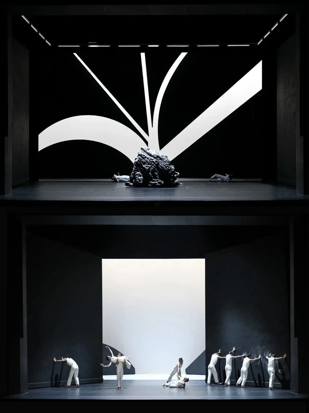 在完成了第一个芭蕾之夜,Hannak又设计了一套色彩丰富但简单的布景。它由两堵不同颜色的旋转舞台的大墙组成,它们可以通过机械和舞台工作人员以许多不同的方式重新安排,从而创造出源源不断的新的舞蹈空间。(素材来源网络)