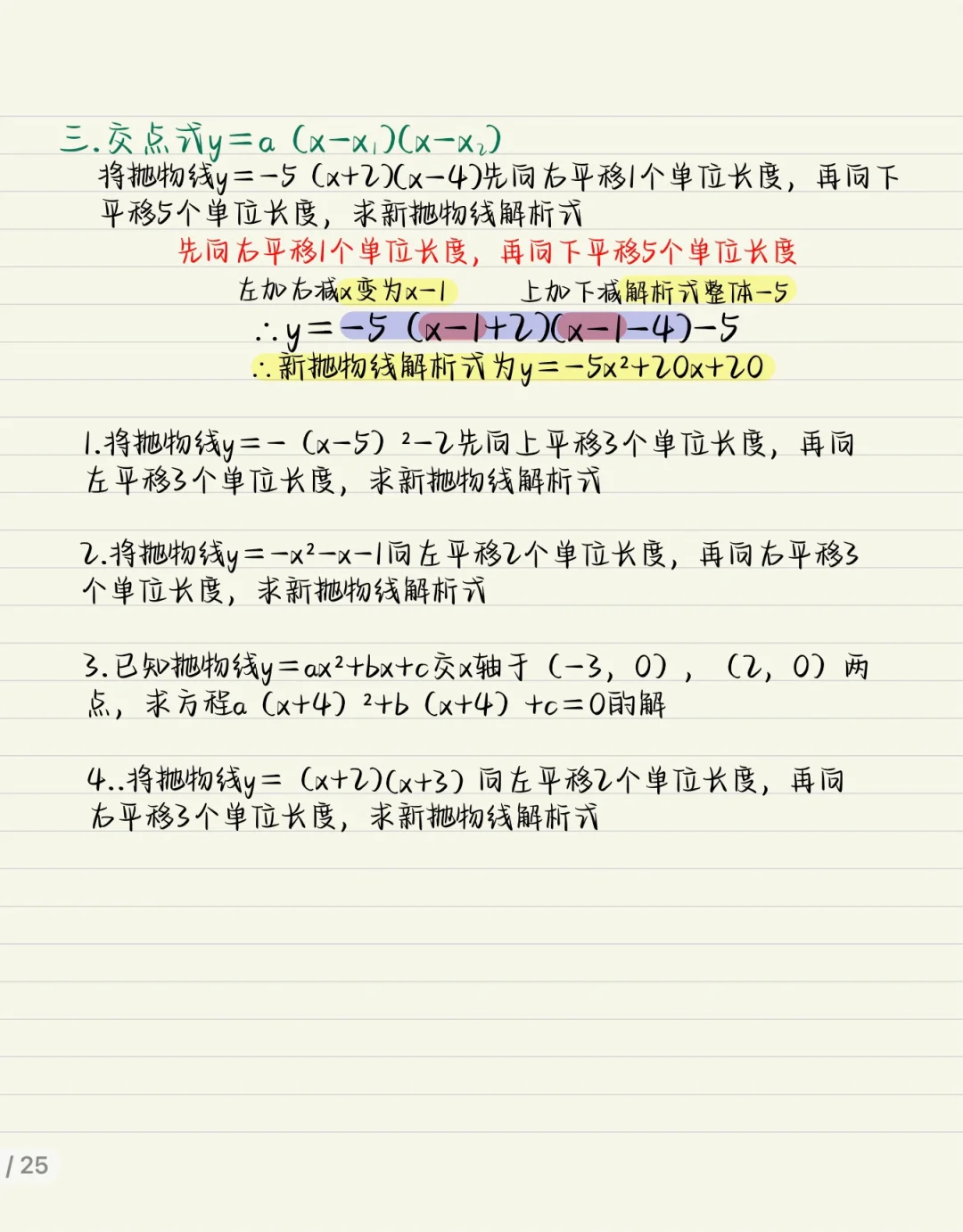 初三数学:二次函数的平移