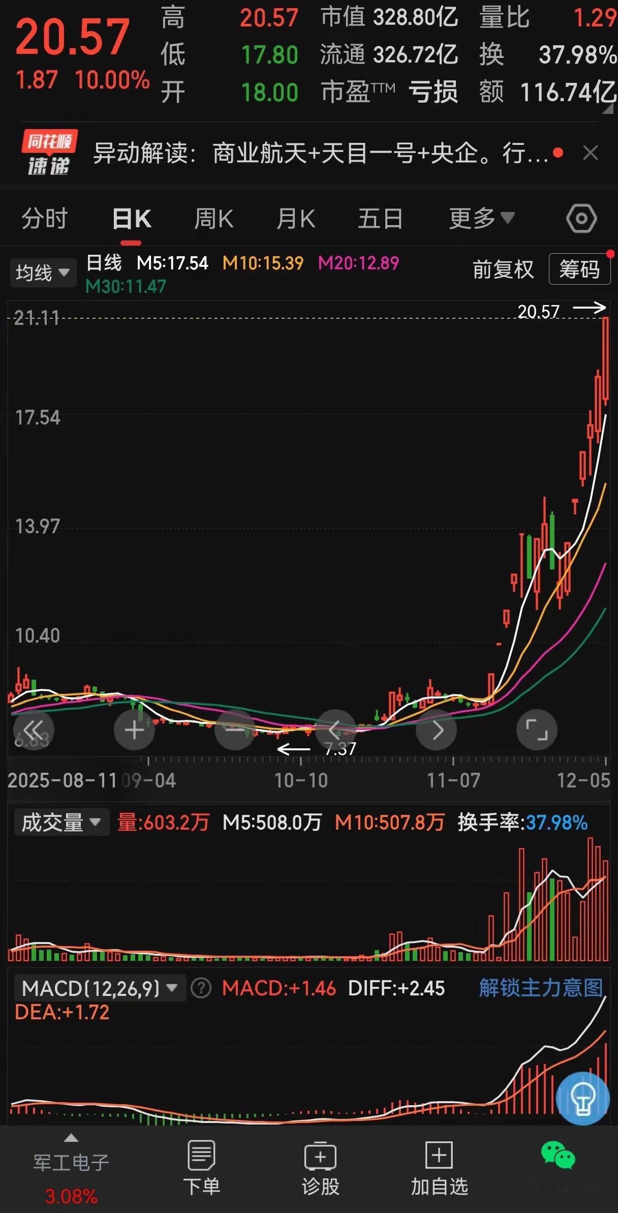 这个周末最大的利好是什么?毫无疑问还是我们的军军发展!而且,福建那边也发来利好说要搞海工装备,而我们的航天发也正是海工装备的一员!这更加突出了他能成为跨年龙的优势!当然,最大的利好还是只要弯弯没有回来,我们的军军就还有炒作的预期,福建板块也就还有炒作的预期,因为,弯弯只要一回来,最大的利好肯定是福建!周五,航天发最后是尾盘拉的涨停,这个气势稍显不足,那么,后面他要竞争跨年龙的话,明天就至关重要!他必须要高开,然后在早上11点前拉涨停,我们才有上车点,否则,这个股就走弱了,就可以取关了,不再具备跨年龙的竞争资格,因为,这个周末关于他这个方向的利好实在是太多了,我目前找不到理由,他明天不能高开,然后快速涨停!所以,大家看好航天发后续的走势吗?