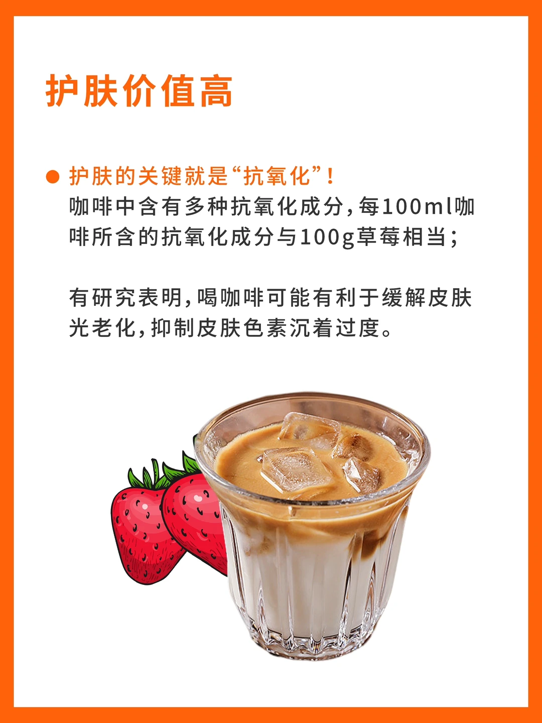 咖啡中含有多种抗氧化成分,每100ml咖啡所含的抗氧化成分与100g草莓🍓相当;