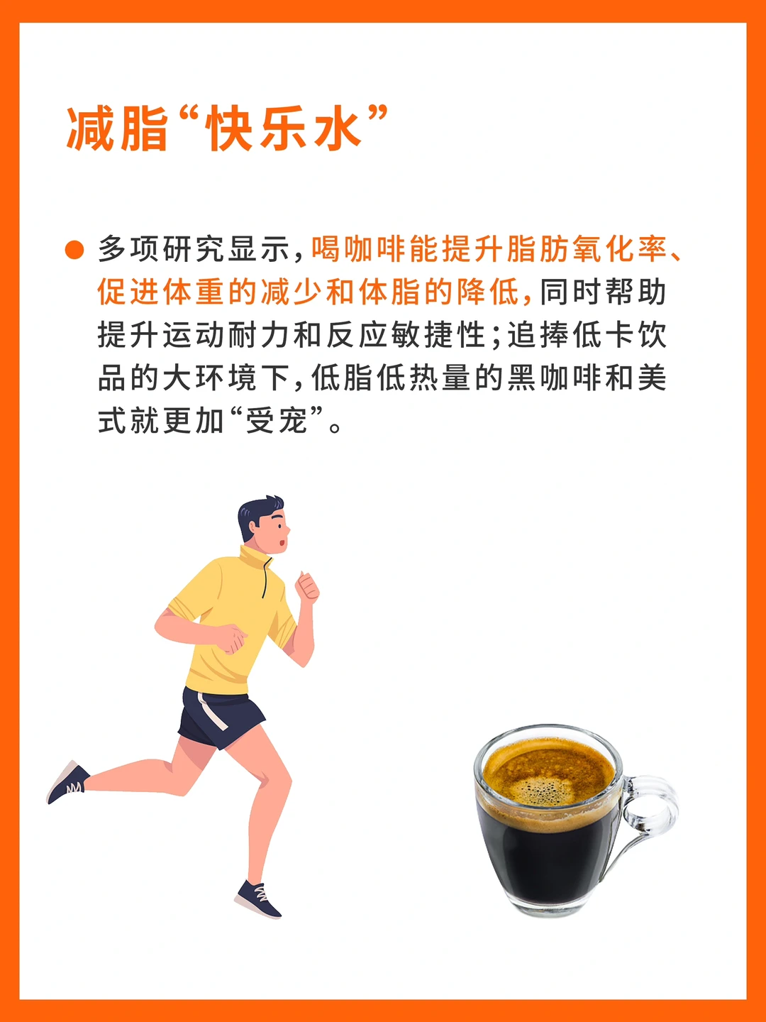 多项研究显示,喝咖啡能提升脂肪氧化率、促进体重的减少和体脂的降低,同时帮助提升运动耐力🏃♀和反应敏捷性;追捧低卡饮品的大环境下,低脂低热量的黑咖啡和美式就更加"受宠"