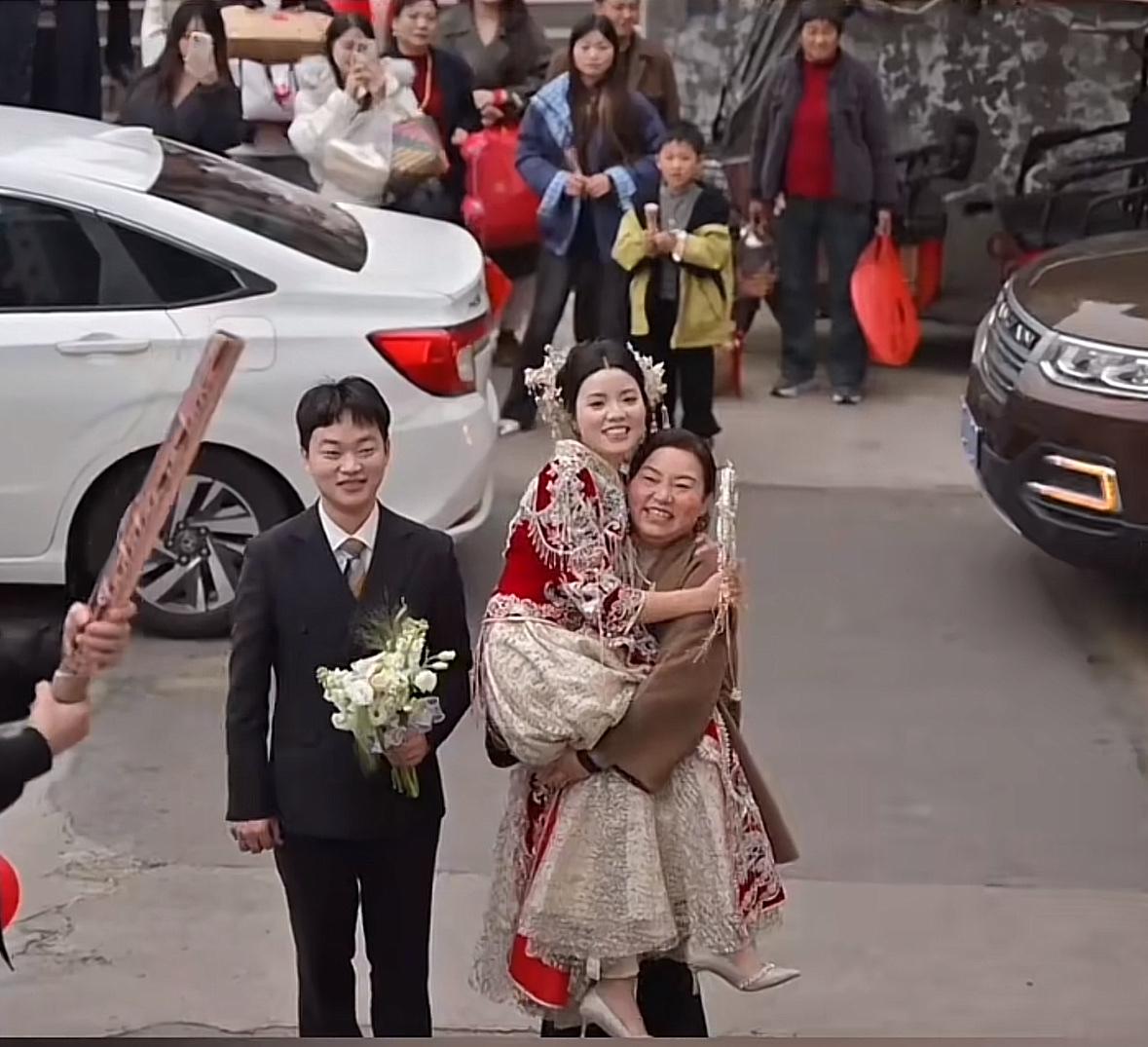 婆媳同框,幸福满满,新婚大喜!新人结婚温馨的一幕,婆婆妈亲自把儿媳抱回家!这得多喜欢啊。这媳妇这时应比老公抱还幸福!是婆家对媳妇尊重的接纳!比抱女儿还亲,这下又多一亲女儿。难怪抱的这么顺手、有力、高兴、步伐如此有力稳健。不是每个媳妇儿都有婆婆抱,也不是每个婆婆都愿意抱。珍藏这一天,用一生去回报,比抱女儿还亲,愿天下婆婆都能这样!愿婆媳关系天长地久!愿幸福的生活永恒久远!历史罕见。好婆婆,堪称第一的好婆婆。