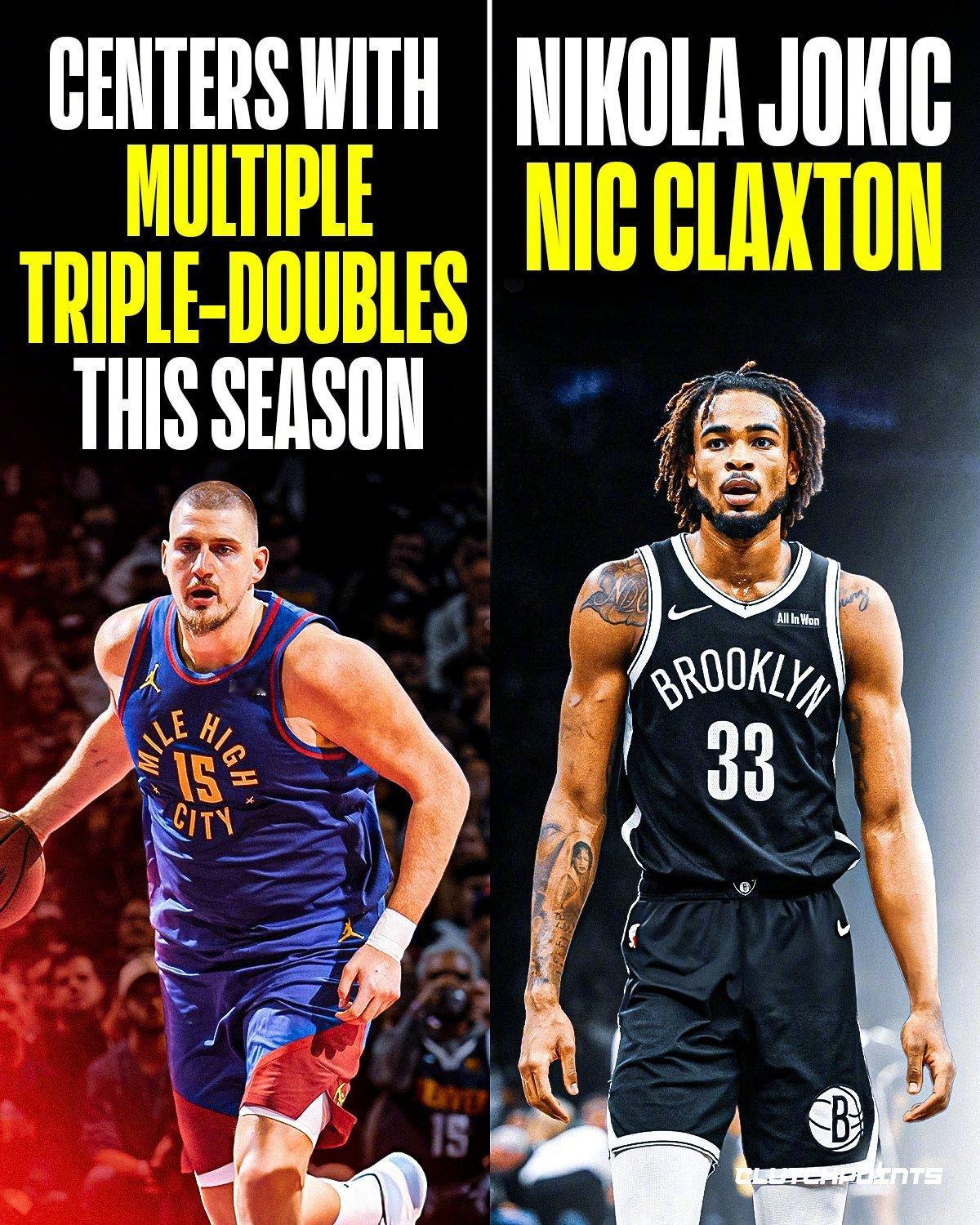 本赛季仅有的两位多次拿到三双的中锋:约基奇和克拉克斯顿。虽然和约老师不是一个量级,但也是真心没想到克拉克斯顿以前给人感觉是进攻只会吃饼、主要拼防守的球员,现在也可以如此全能!
