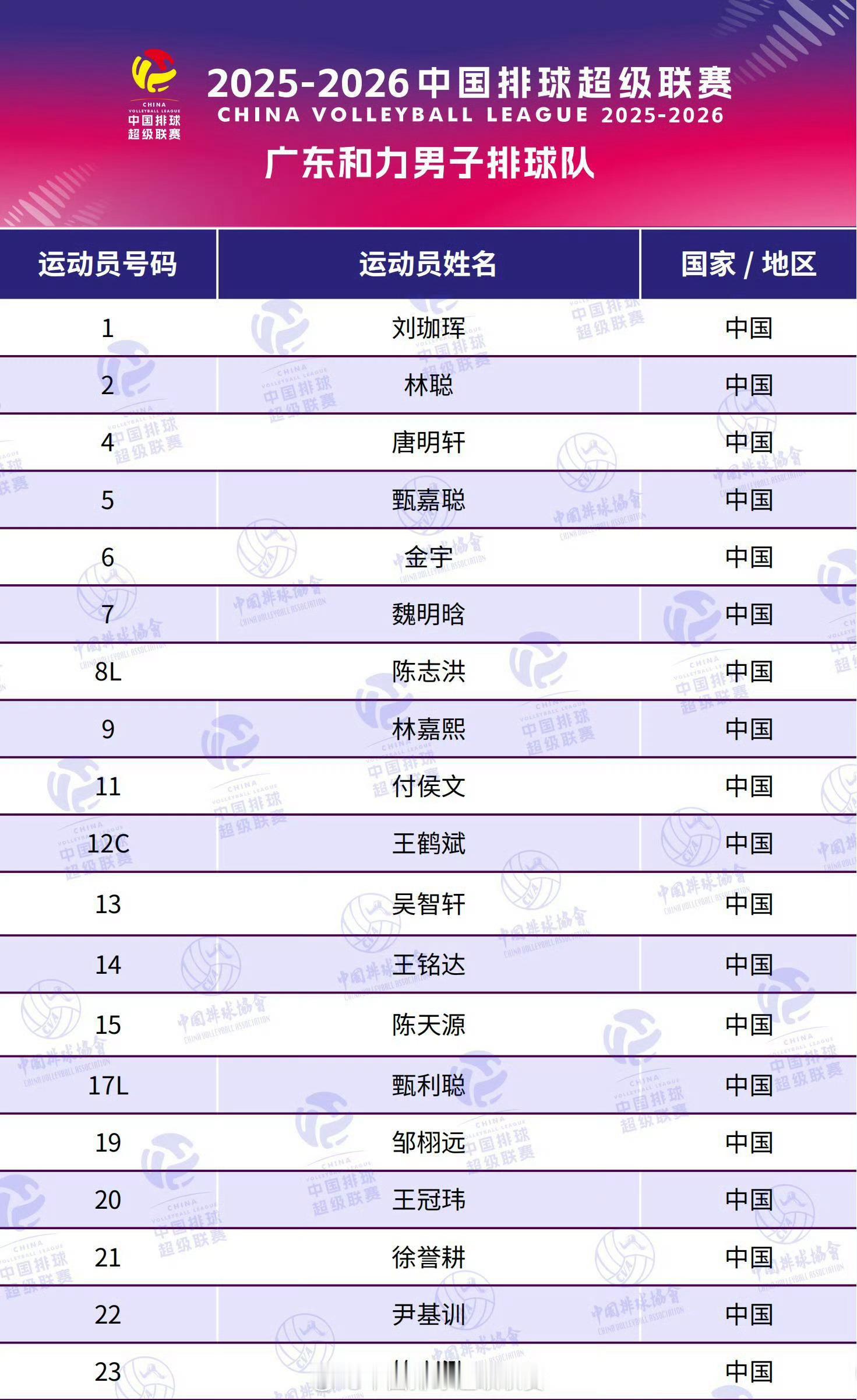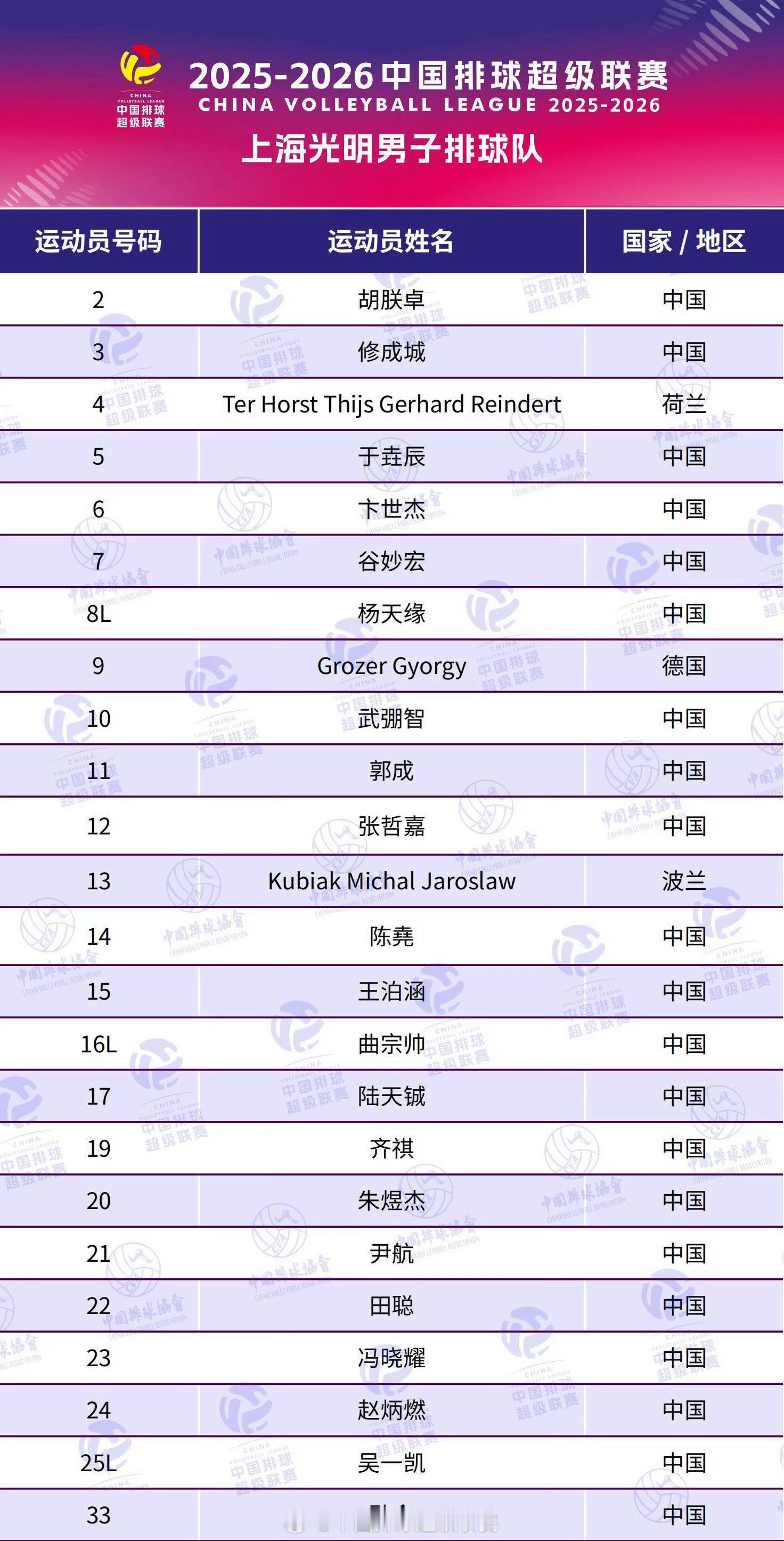 男排A级大名单来咯此前微信公众号发布的和现在最终版有一定出入,以这个为准吧2025-2026中国男排超级联赛