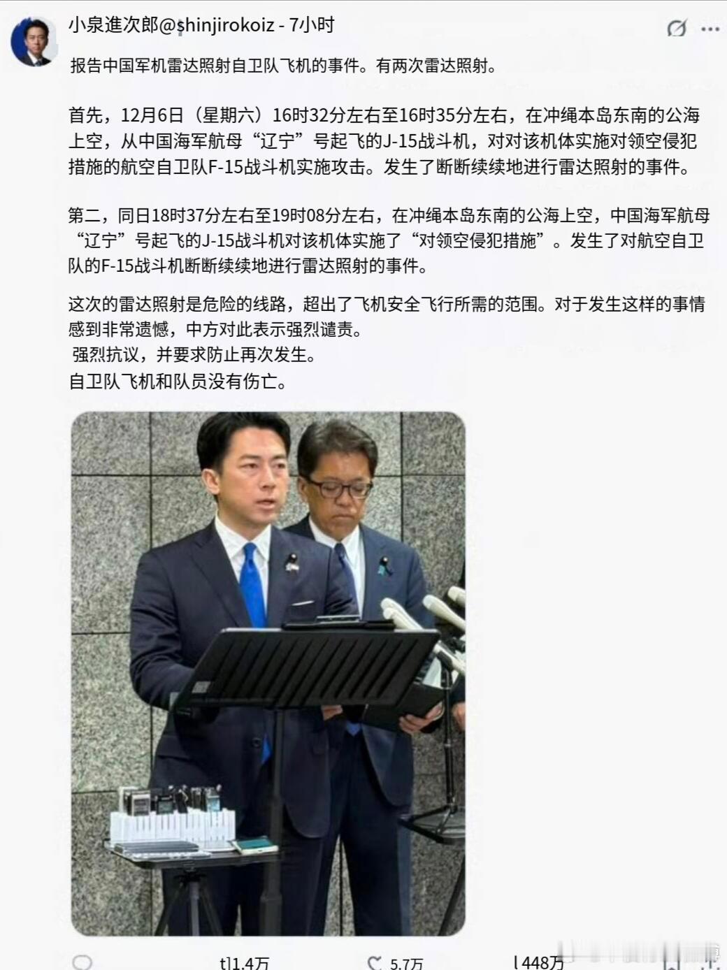 有本事拿火控雷达照我。中国人民解放军海军新闻发言人王学猛海军大校表示,日前,中国海军辽宁舰航母编队在宫古海峡以东海域正常组织舰载战斗机飞行训练,事先公布了训练海空域。期间,日本自卫队飞机多次抵近中国海军训练海空域滋扰,严重影响中方正常训练,严重危及飞行安全。日方有关炒作与事实完全不符,我们严正要求日方立即停止污蔑抹黑,严格约束一线行动。中国海军将依法采取必要措施,坚决维护自身安全和合法权益。热点观点华俊竹有话说