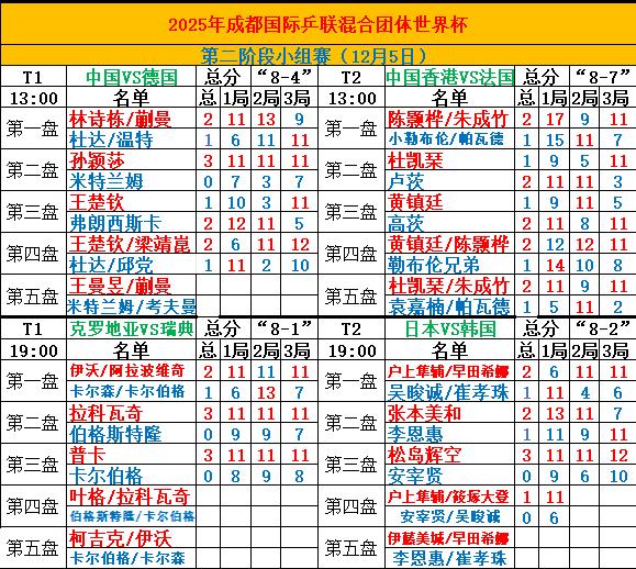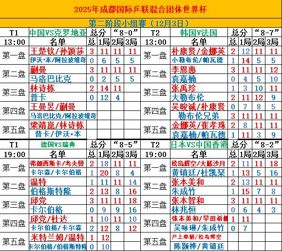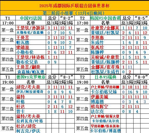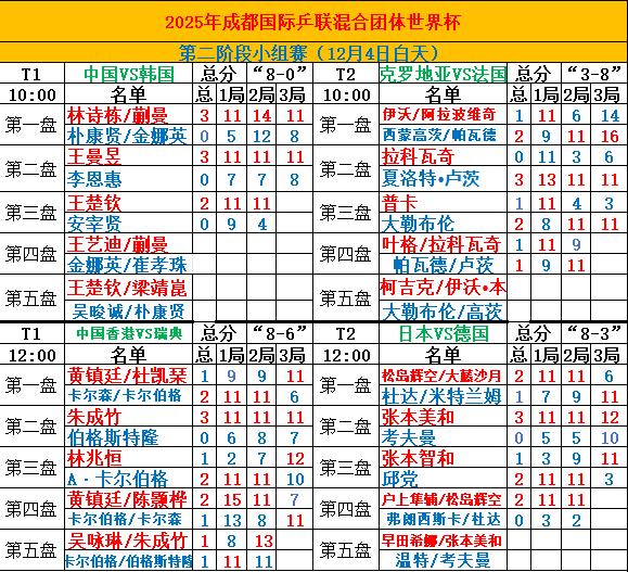 成都乒乓球混合团体第二阶段完整赛果。成都乒乓球混合团体第二阶段完整赛果,中、日、德、韩晋级四强。