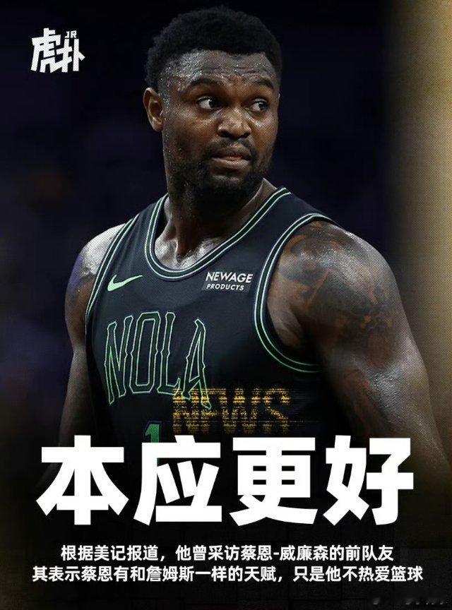 蔡恩前队友:蔡恩是詹姆斯级别的天赋,但他不那么热爱篮球美国记者Marc Spears在今天的一档节目中谈到了蔡恩的天赋。Marc Spears说道:“我和蔡恩的一位前队友聊过,他说蔡恩的天赋大到实际上是勒布朗-詹姆斯级别的天赋。他曾认为蔡恩甚至可以比勒布朗更强。但他说:‘可他不像勒布朗-詹姆斯那样热爱篮球。’”蔡恩本赛季场均可以得到22.1分5.6篮板4助攻。
