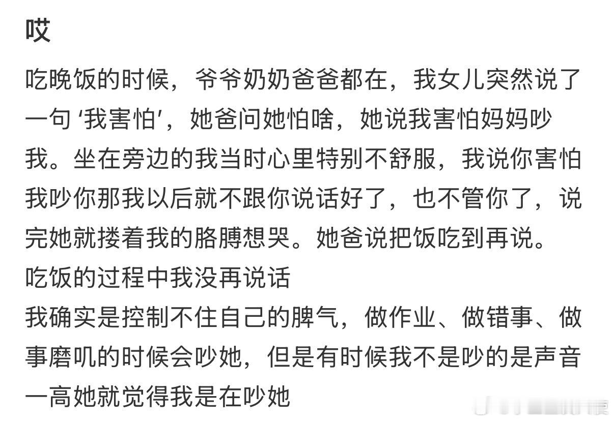 吃晚饭的时候,爷爷奶奶爸爸都在,我女儿突然说了一句“我害怕”
