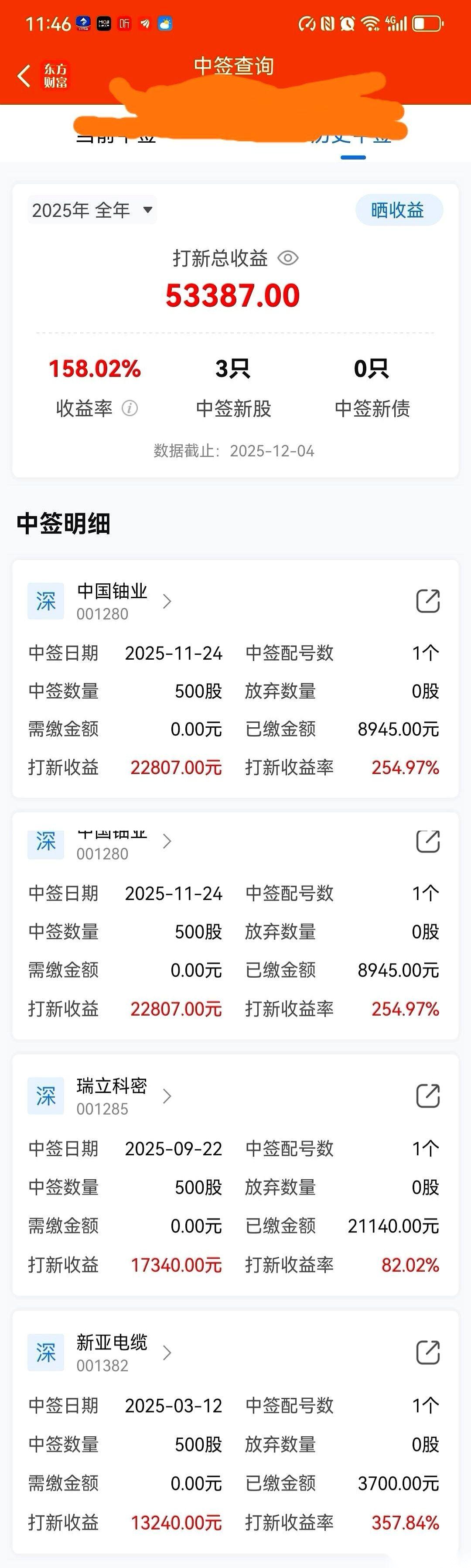 今年中了三个签,俩新债,一共挣了五万四。 听着是不是挺牛的?我老婆夸我运气好,我说你快别说了。 这感觉就像什么呢? 就像你被人从十楼推下去,摔个半死,结果在地上捡到一百块钱。 你说你该哭还是该笑? 整个下半年,亏得我晚上睡觉都磨牙。眼看着账户里的钱,从一辆帕萨特,变成了一辆雅迪。 现在可好,这点打新的钱,连给我补个车轱辘都不够。 最扎心的是,就我账户里现在这点钱,以后连参与抽签的门槛都快够不着了。 游戏规则就是这么设计的。 先给你点甜头,让你产生幻觉,觉得自己是股神附体,天选之子。 然后一记大耳光抽过来,告诉你,醒醒,你就是那根等着被割的韭菜。 算了,不幻想了。 起码听上去,今年也算中过三次签的人了。
