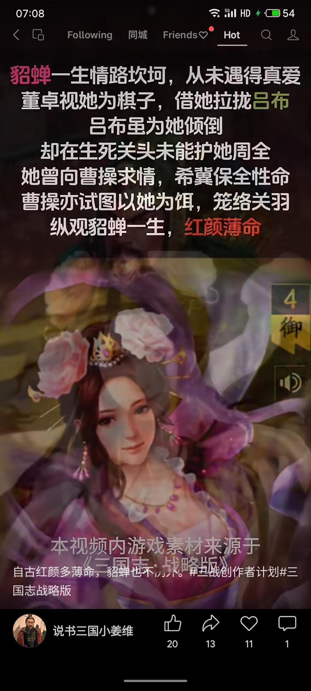 貂蝉一生坎坷,被董卓当作棋子拉拢吕布。吕布虽倾心却未能护她周全,求助曹操亦只被用作笼络关羽的工具。红颜薄命,终难自主。