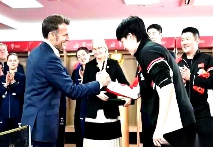 我真怕王楚钦下一秒就掏出手机,对着马克龙说:哥,你看我小时候的照片,一模一样!