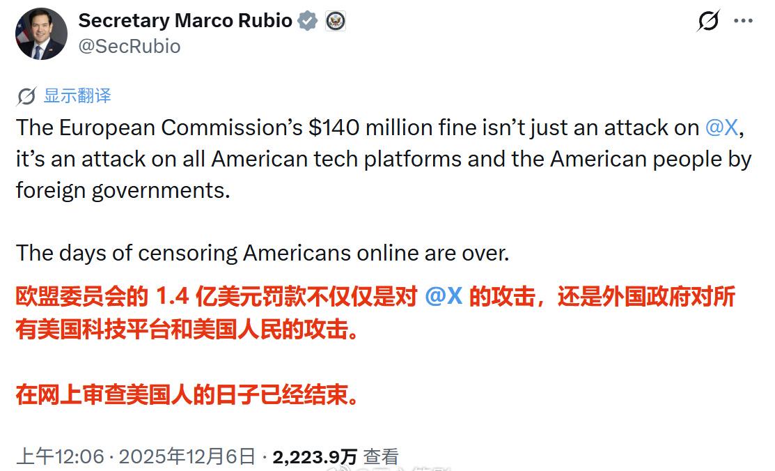埃隆·马斯克公开呼吁废除欧盟,这一言论在国际上引发轩然大波。事件的导火索,是一张来自欧盟的天价罚单。 2025年12月5日,欧盟委员会依据《数字服务法案》,首次对马斯克旗下的社交媒体平台X开出罚单,金额高达1.2亿欧元。处罚理由包括:付费认证系统可能误导用户、广告数据不够透明,以及限制研究机构访问公共数据。欧盟要求X平台在规定时间内提交并落实整改方案。 处罚决定公布后,马斯克反应激烈。次日,他在X平台上发文,公开呼吁“欧盟应当被废除”,主张将主权归还各成员国,以便政府能更好地代表人民。他指责欧盟的官僚体系正在“缓慢扼杀欧洲”。作为反击,他还关闭了欧盟委员会在X平台上的广告账户。 这番言论迅速点燃了国际舆论场。俄罗斯联邦安全会议副主席梅德韦杰夫立即表示“完全正确”,呼应了其长期以来对欧盟的批评。美国政界高层,包括副总统和国务卿,则指责欧盟此举是“对美国科技平台和美国人民的攻击”,暗示可能采取贸易反制。 欧盟内部意见也不统一。一些右翼政治人物声援马斯克,批评欧盟是“极权机构”;而其他欧盟官员则坚称处罚基于法规和事实,与国籍无关。网络舆论中也不乏嘲讽,有人反问:按照马斯克的逻辑,美国的主权是否也该归还各州? 这场冲突的根源,远不止于一纸罚单。它暴露了数字时代深层次的理念碰撞。欧盟试图通过《数字服务法案》确立其数字主权,强化平台问责,以保护用户权益和社会公共利益。而以马斯克为代表的美国科技巨头及其支持者,则视此类监管为过度干预,是对言论自由和创新精神的压制。 同时,这也夹杂着复杂的地缘政治与经济博弈。美欧之间在贸易、能源、安全政策上的诸多摩擦,为此事件提供了紧张的背景。马斯克旗下的特斯拉公司在欧洲市场的表现,也被外界认为可能影响了他的态度。 然而,围绕此事也存在一些需要厘清的事实。欧盟的罚款对象是X平台,而非马斯克个人;此外,关于特斯拉在欧洲销量暴跌的传闻,也缺乏权威数据的证实。 无论如何,这场风波标志着科技巨头与区域监管联盟之间的对抗进入新阶段。它本质上是一场关于未来数字世界规则制定权的争夺。马斯克的激烈反应和由此引发的阵营撕裂,凸显了在全球化背景下,技术创新、商业利益、国家主权与区域监管之间难以调和的张力。后续发展,将考验各方的智慧与平衡能力。