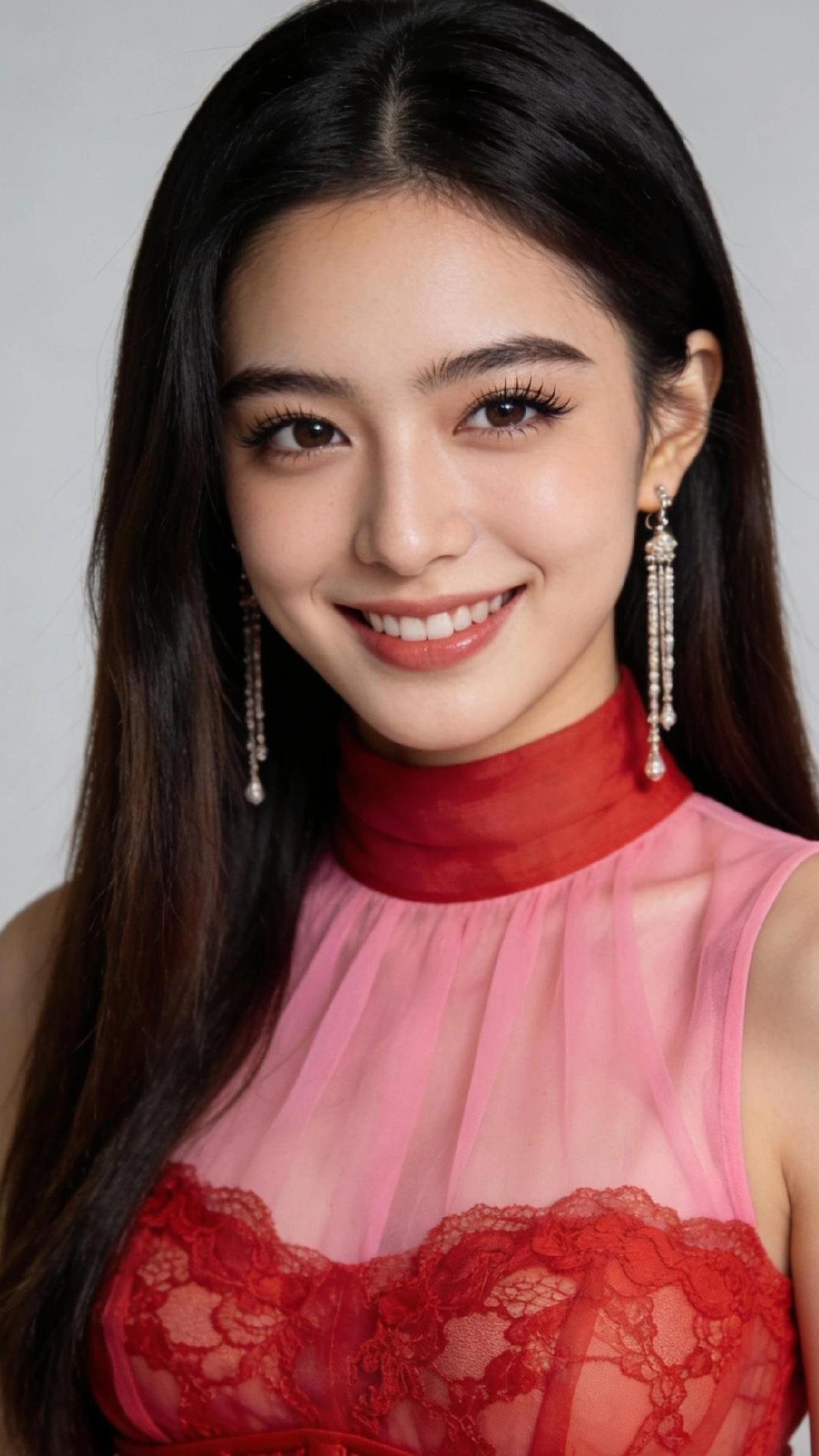 甜美笑容,红粉相间,优雅蕾丝,闪耀耳环,完美女神!💖✨