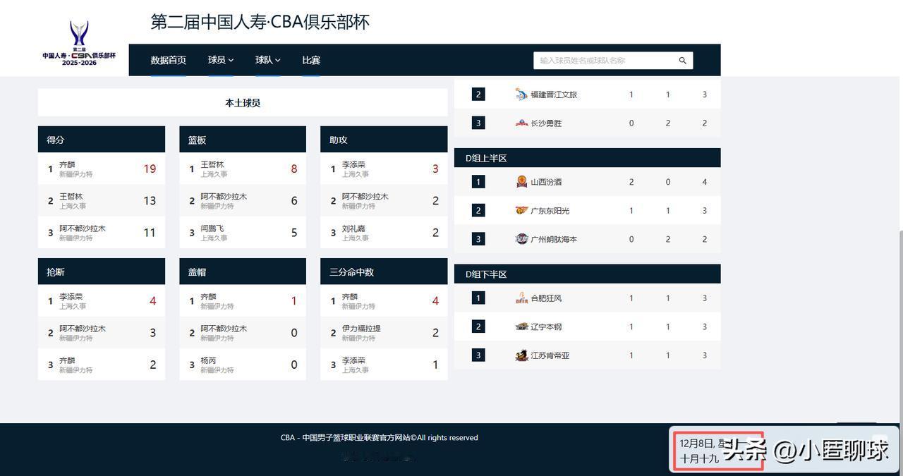 CBA俱乐部杯是不是不受重视啊,CBA官网居然不实时更新战况! 真是离谱,我在CBA官网查广东宏远的俱乐部杯战绩包括其他球队的战绩,居然从打完星期五也就是12月5日那场比赛后就再没更新过,直到现在12月8日早上八点半还没更新,我真的感觉挺震撼的。 是这个比赛不太受重视吗?还是说之前的CBA比赛遇到周末的比赛时官网都是不实时更新的? 要知道你官网数据不更新,后面许多篮球软件也是不会更新的! 真的不怪有些球迷说CBA不专业,连实时更新战绩都做不到,还能指望其他更重要的能做更好吗?CBA那些事 冬日生活打卡季