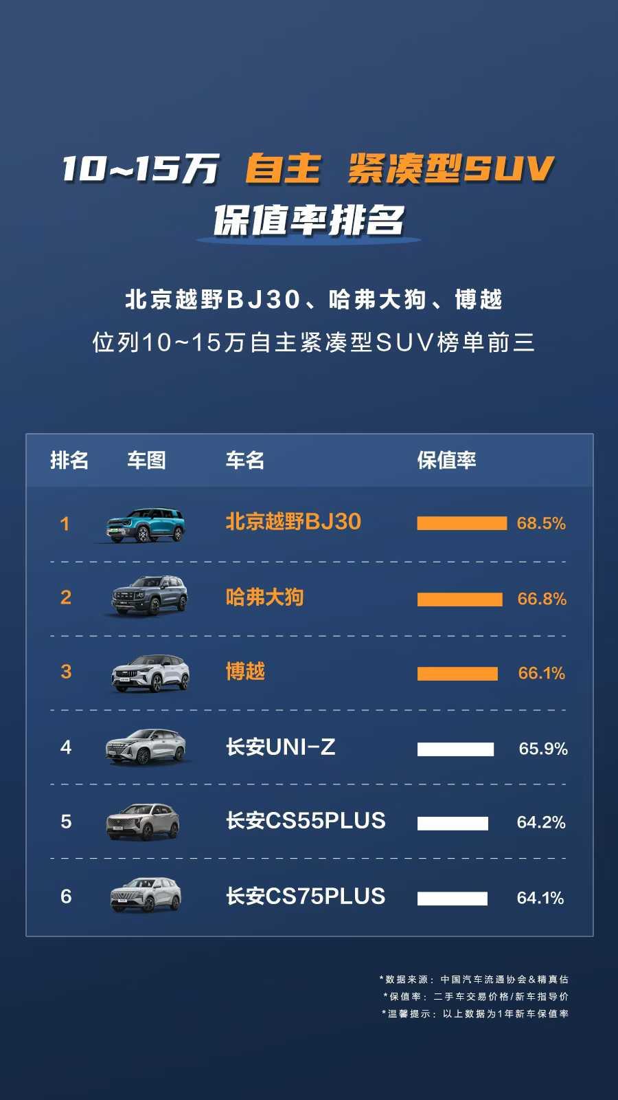 10万级紧凑SUV保值榜出炉! 北京越野BJ30以68.5%保值率断层领先, 超野、超省、超大、超保值