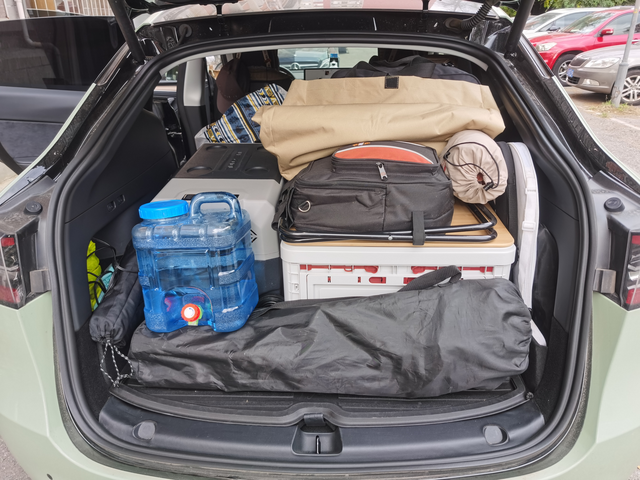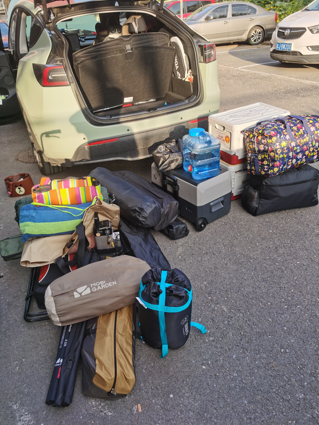 搬家露营极致发挥了modely的装载能力 搬家式露营简直太考验车的装在能力,大切装不下model y给塞进去了,还能坐三个人。