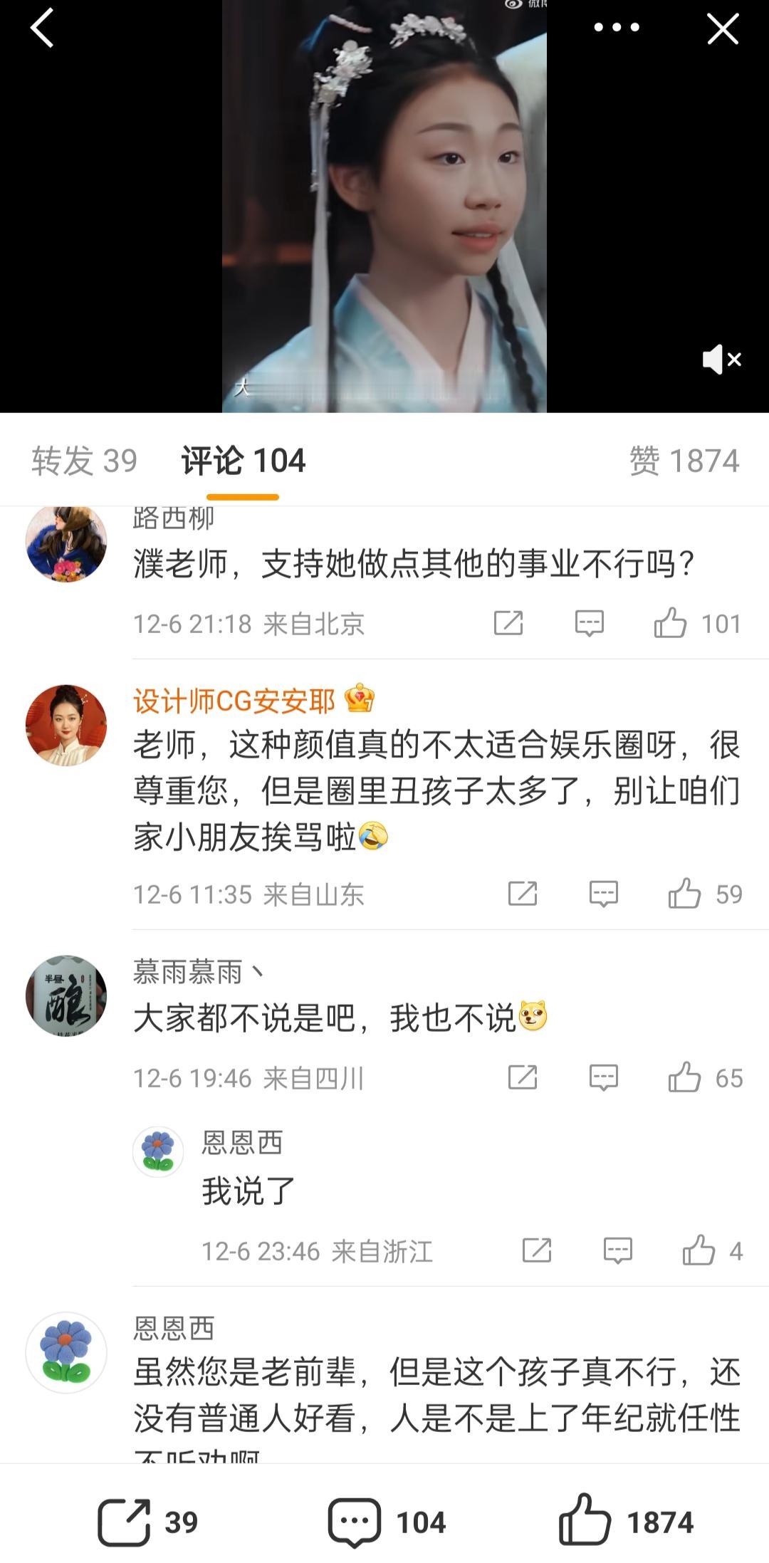 著名演员濮存昕亲自为外孙女的新剧做宣传。 老艺术家濮存昕最近做了一件事情引发网友的热议。起因是濮先生的外孙女也进军演艺圈了,拍了一部古装剧。令人意想不到的是,濮存昕先生亲自在微博上发文,为外孙女的这部剧做宣传。 对此,网友们议论纷纷。 有的网友建议濮存昕老师的外孙女改行。 也有网友说,濮存昕老师是老前辈,但还是要劝您一句。 当然,也有网友留言对演艺圈的发展表示担忧。 大家认为濮存昕老师的外孙女能不能在演艺圈走红呢?